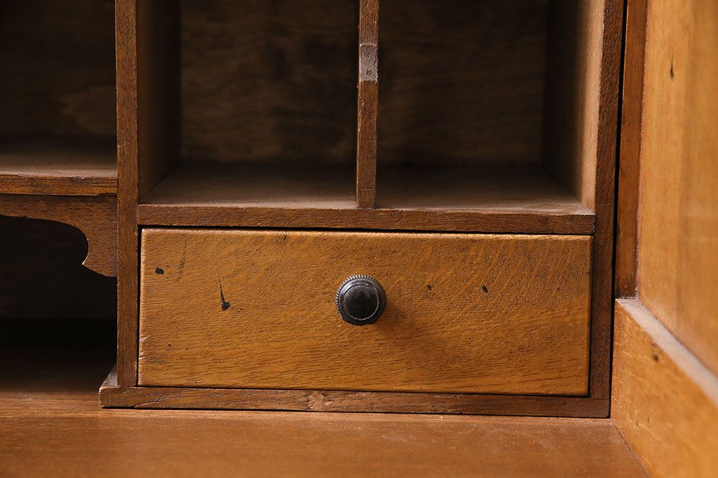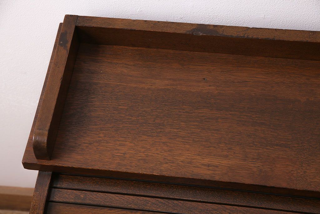 デスク> ロールトップデスク > 和製アンティーク ロータイプが珍しい、ナラ材製のロールトップデスク(片袖デスク、座卓、座机、在宅ワーク、在宅用ワークデスク)(R-047575)