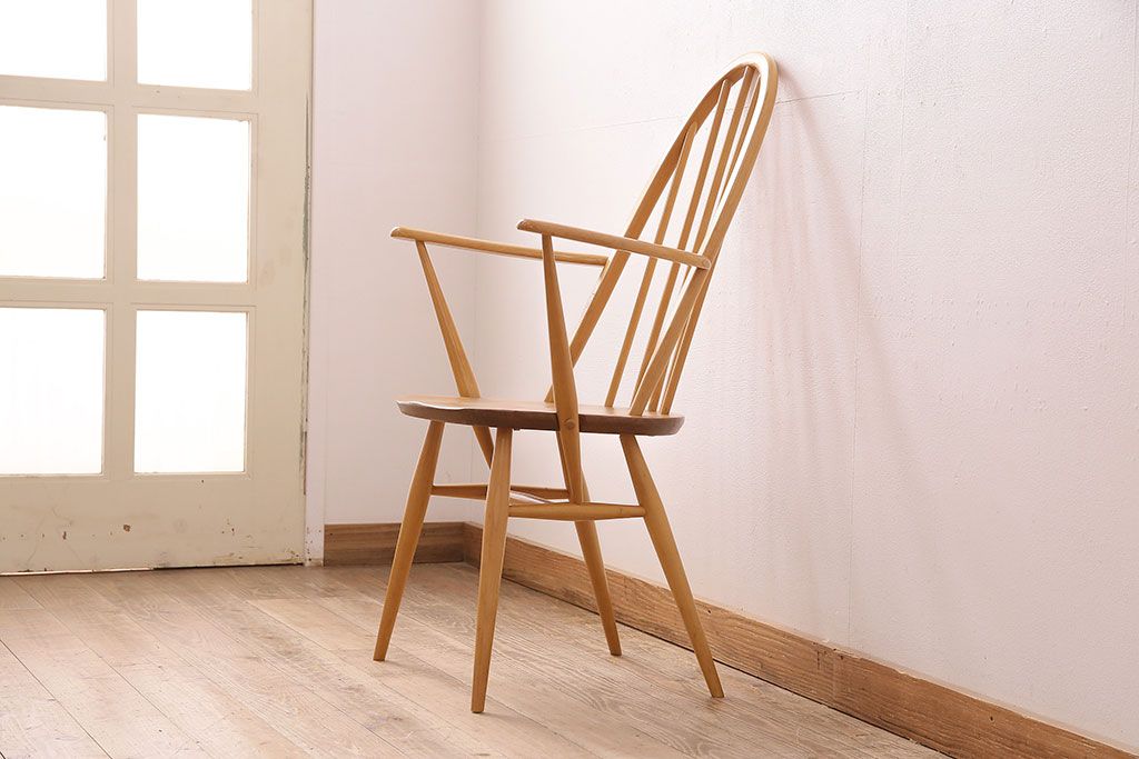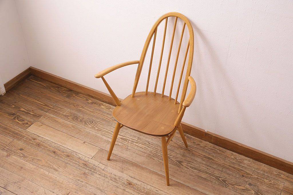 椅子・ベンチ> アームチェア > イギリスアンティーク ERCOL 優雅なフォルムが魅力的!アーコールのクエーカーアームチェア(ダイニングチェア、椅子)(R-048005)
