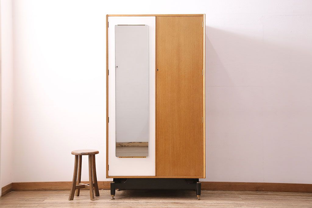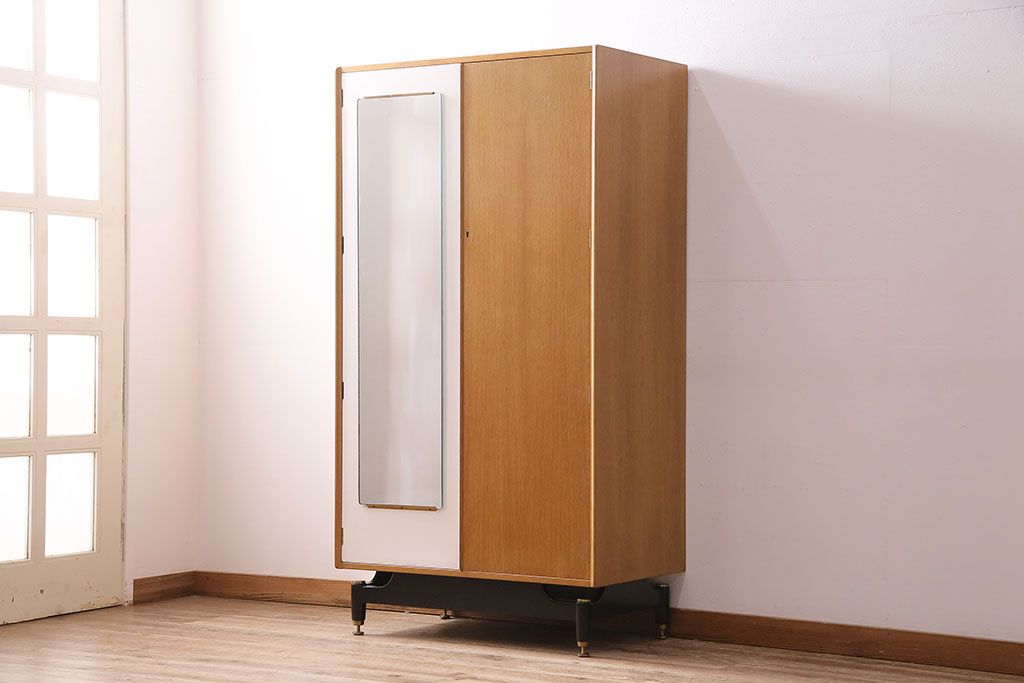 イギリスビンテージ 人気のG-PLAN!扉のホワイトカラーがお洒落なワードローブ(収納棚、キャビネット)(R-047584)