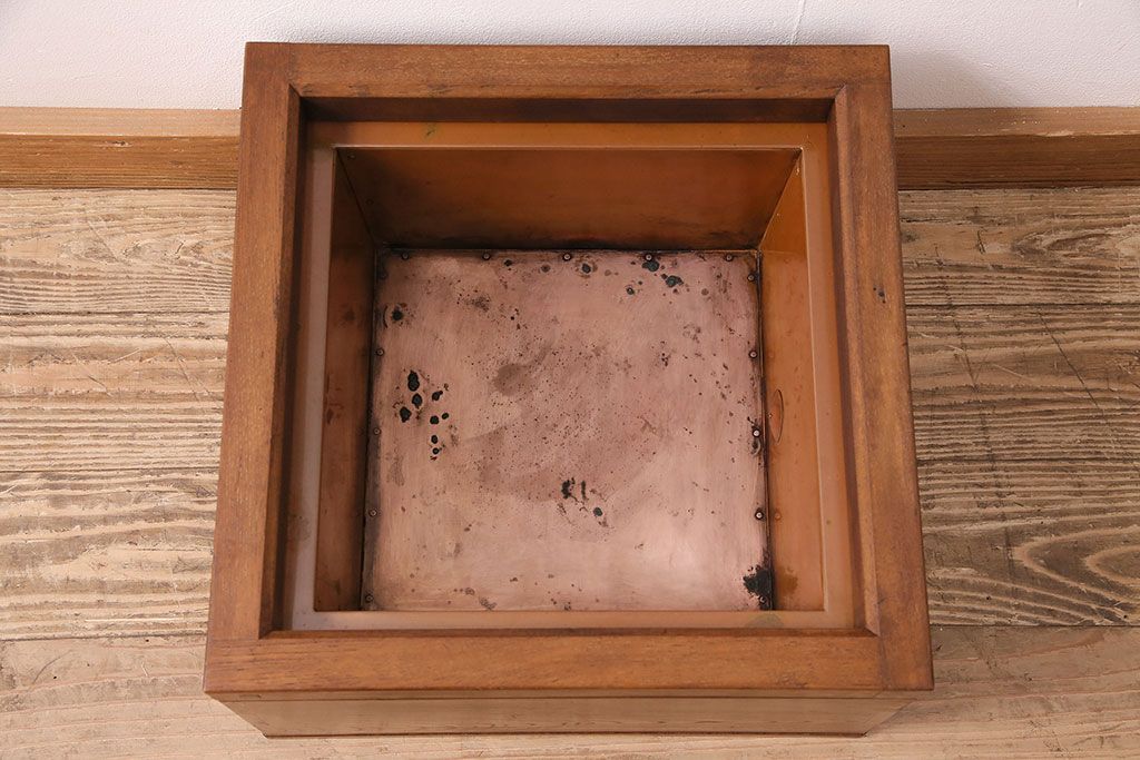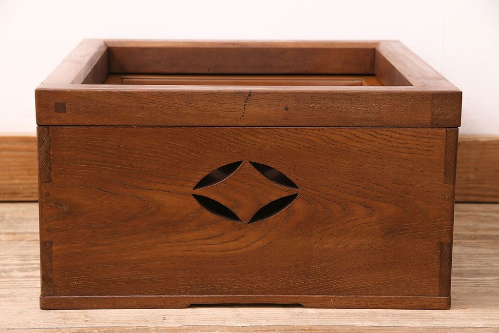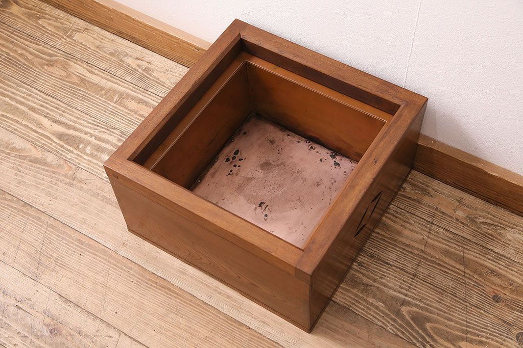中古 指物家具 桑材 趣のある和の雰囲気作りにおすすめな角火鉢(木製火鉢、茶道具、箱火鉢)(R-048019)