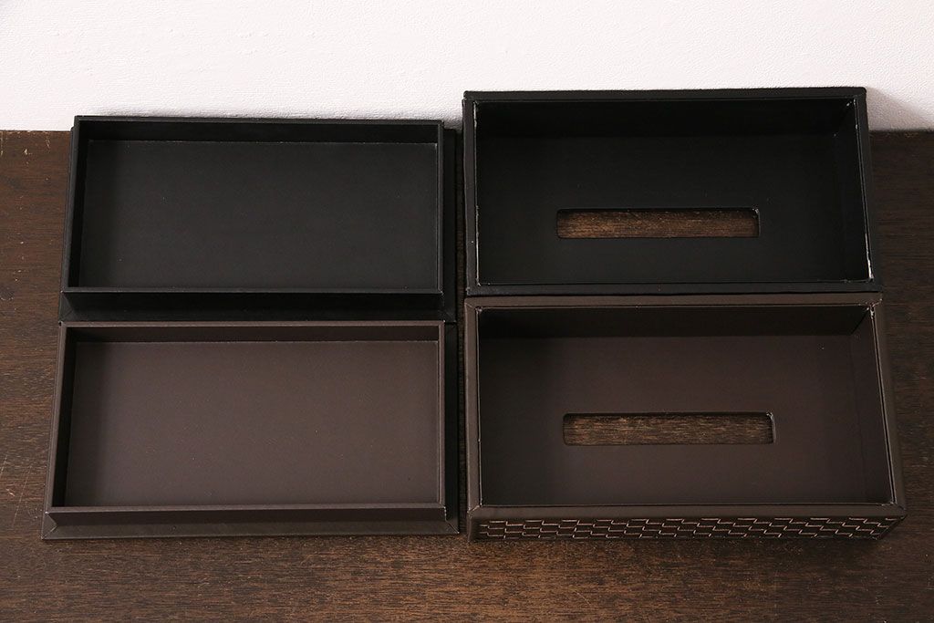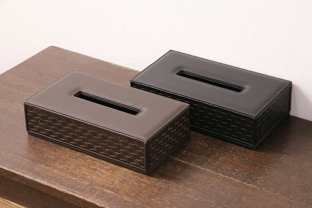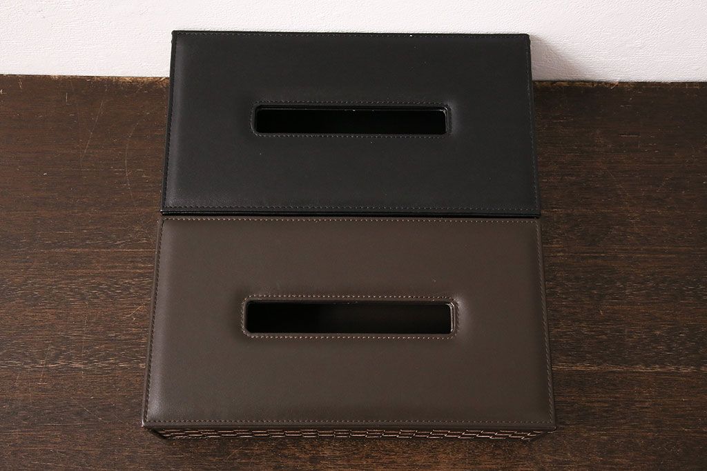 ラフジュ工房> 雑貨 > 中古 Cassinaixc.(カッシーナイクスシー) イクスシーオリジナル レザーティッシュボックス ブラック&ダークブラウン2個セット(ティッシュケース)(R-048088)