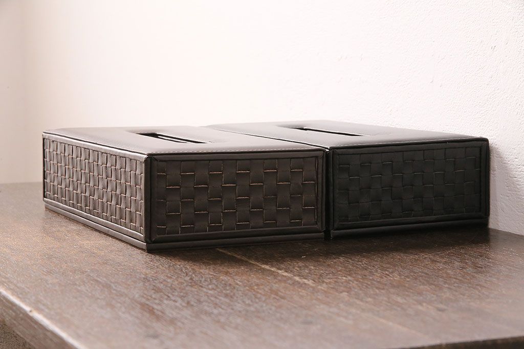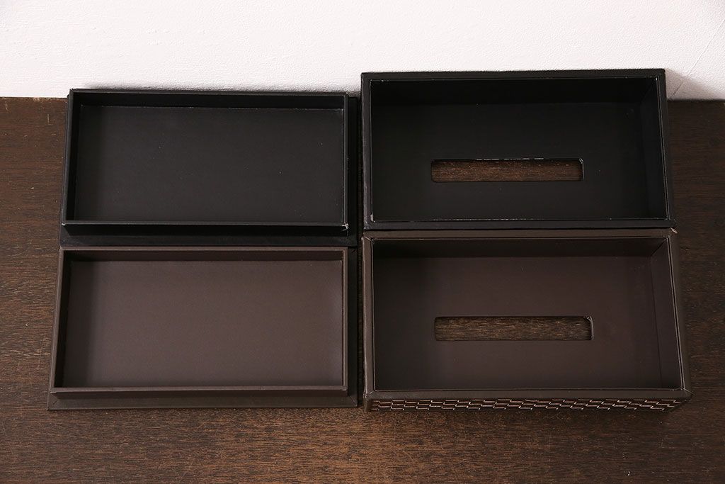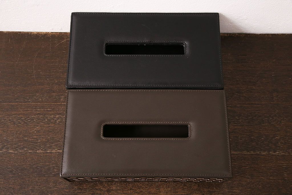 ラフジュ工房> 雑貨 > 中古 Cassinaixc.(カッシーナイクスシー) イクスシーオリジナル レザーティッシュボックス ブラック&ダークブラウン2個セット(ティッシュケース)(R-048089)