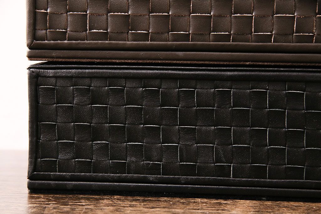 中古 Cassinaixc.(カッシーナイクスシー) イクスシーオリジナル レザーティッシュボックス ブラック&ダークブラウン2個セット(ティッシュケース)(R-048089)