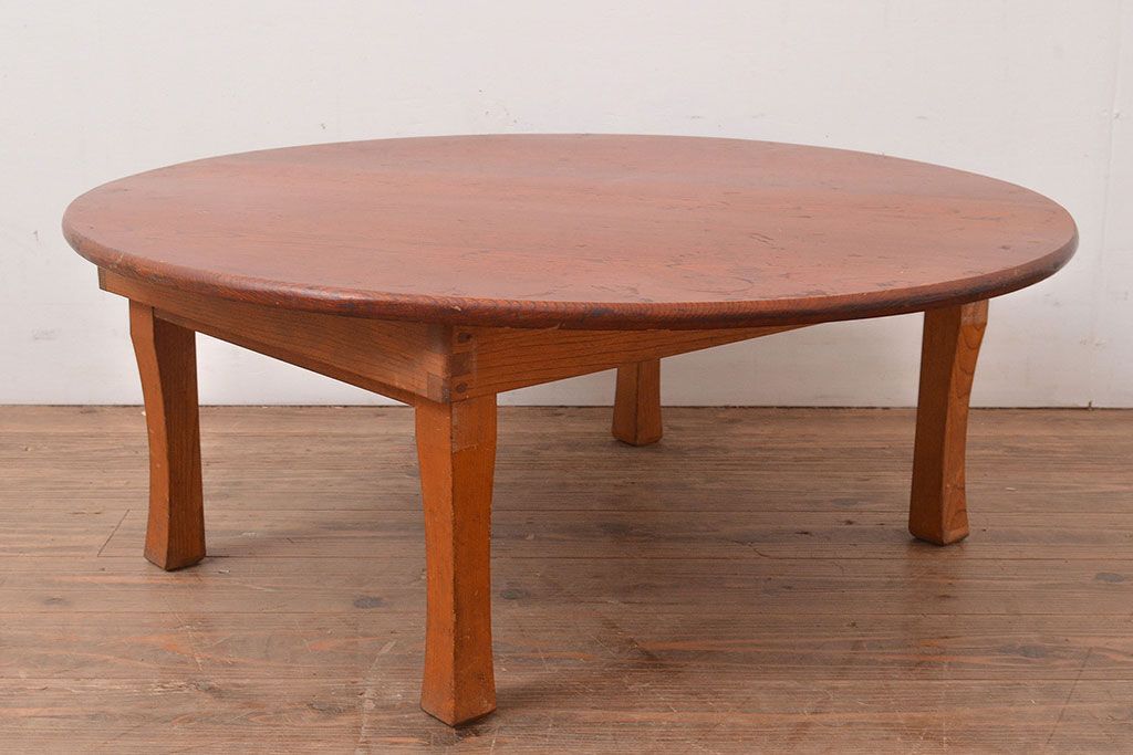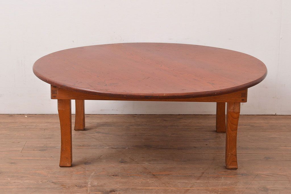 テーブル> 座卓 > 和製アンティーク 栓材 昭和初期 くっきりとした木目が魅力的なちゃぶ台(座卓、ローテーブル、折りたたみテーブル)(R-047503)