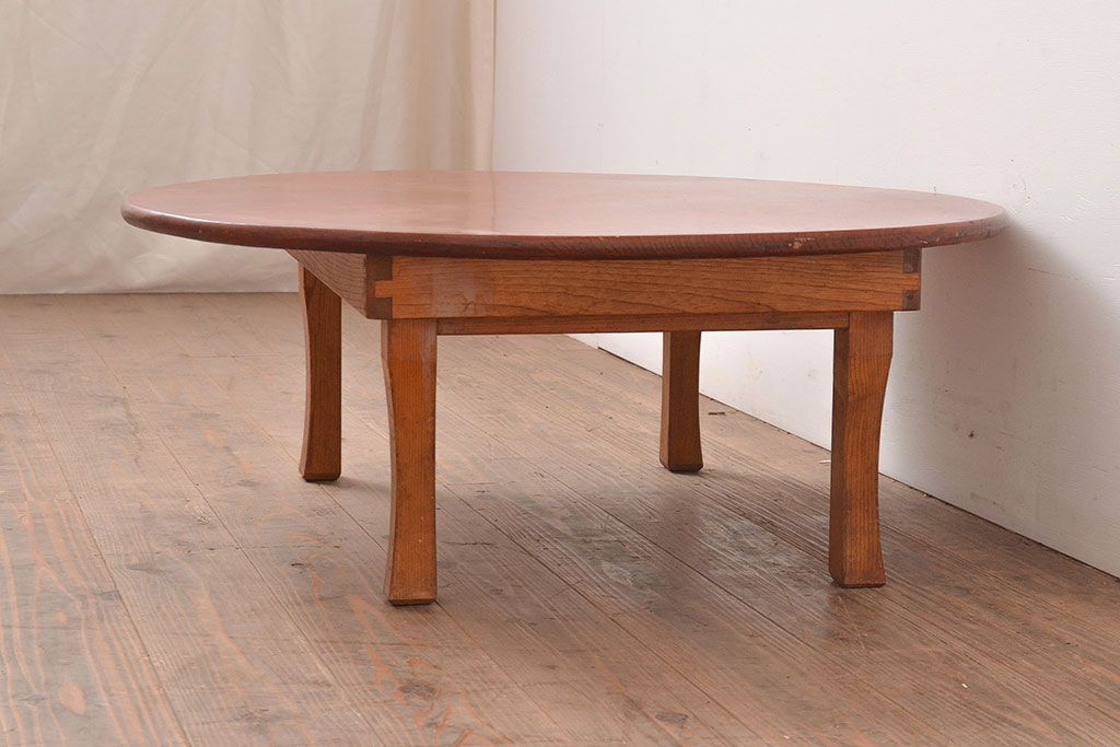 テーブル> ちゃぶ台 > 和製アンティーク 栓材 昭和初期 くっきりとした木目が魅力的なちゃぶ台(座卓、ローテーブル、折りたたみテーブル)(R-047503)