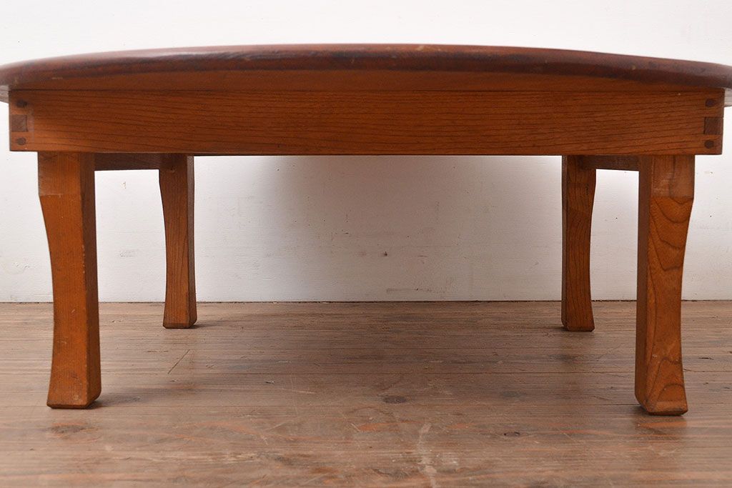 和製アンティーク 栓材 昭和初期 くっきりとした木目が魅力的なちゃぶ台(座卓、ローテーブル、折りたたみテーブル)(R-047503)
