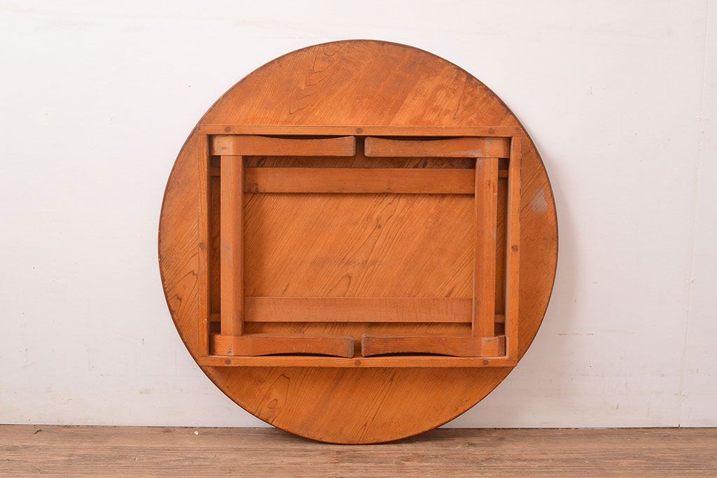 テーブル> おりたたみテーブル > 和製アンティーク 栓材 昭和初期 くっきりとした木目が魅力的なちゃぶ台(座卓、ローテーブル、折りたたみテーブル)(R-047503)