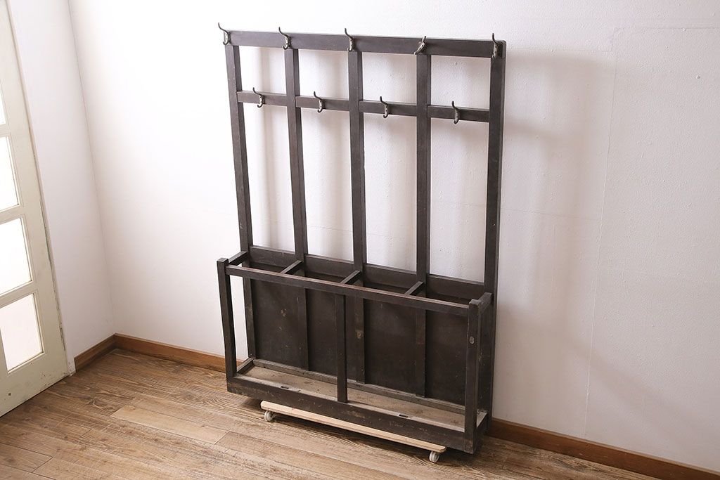和製アンティーク 昭和初期 玄関の整理整頓や身支度に便利な傘立て&コートハンガー(カサ立て、スタンド、ハンガーフック)(R-047329)です。