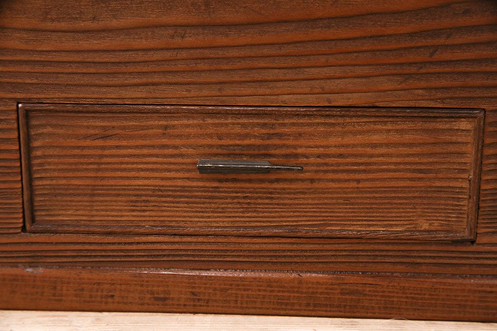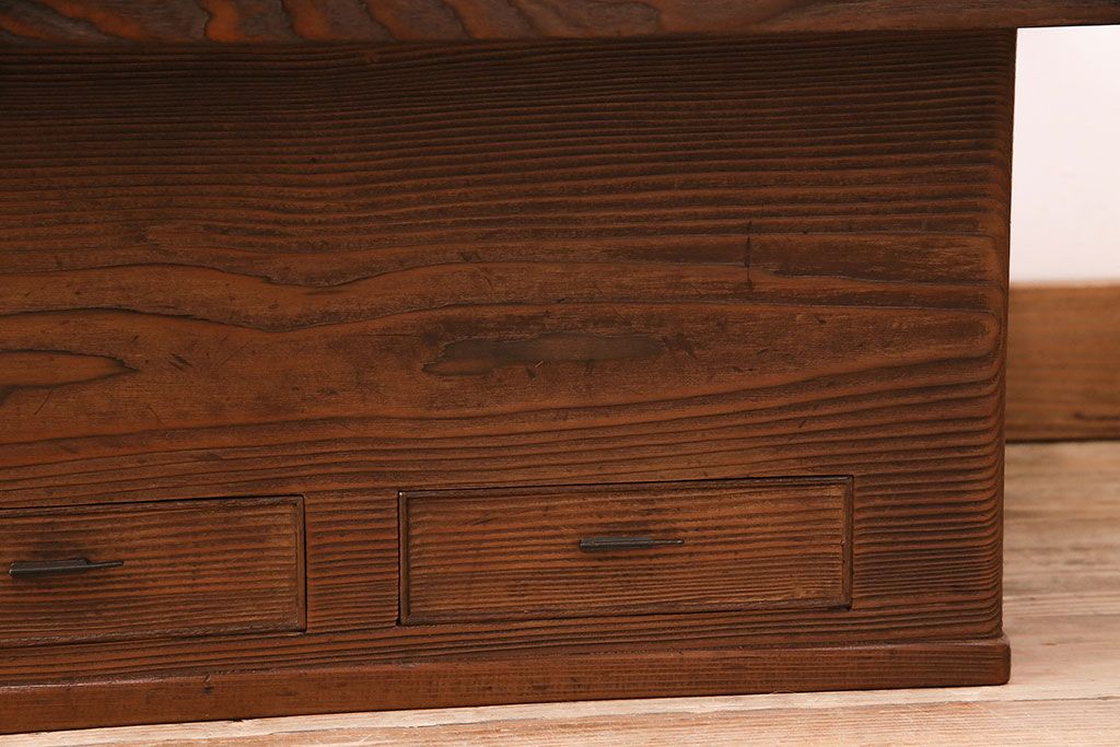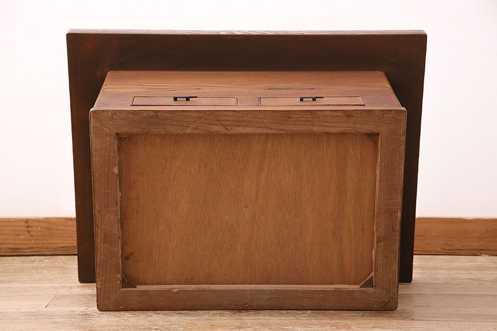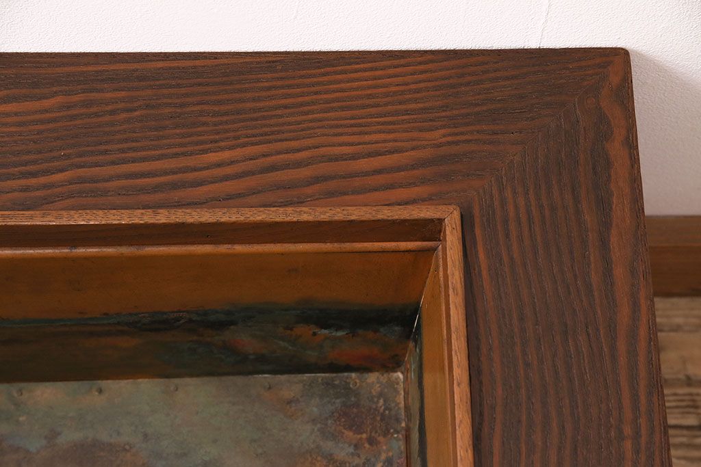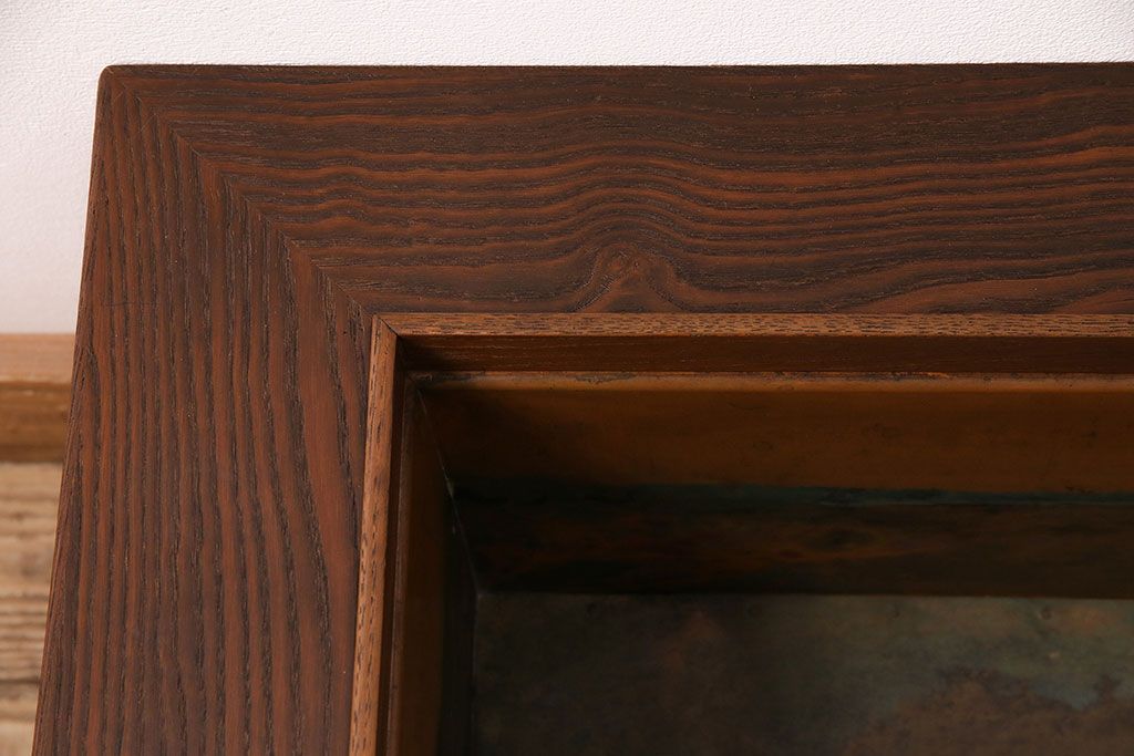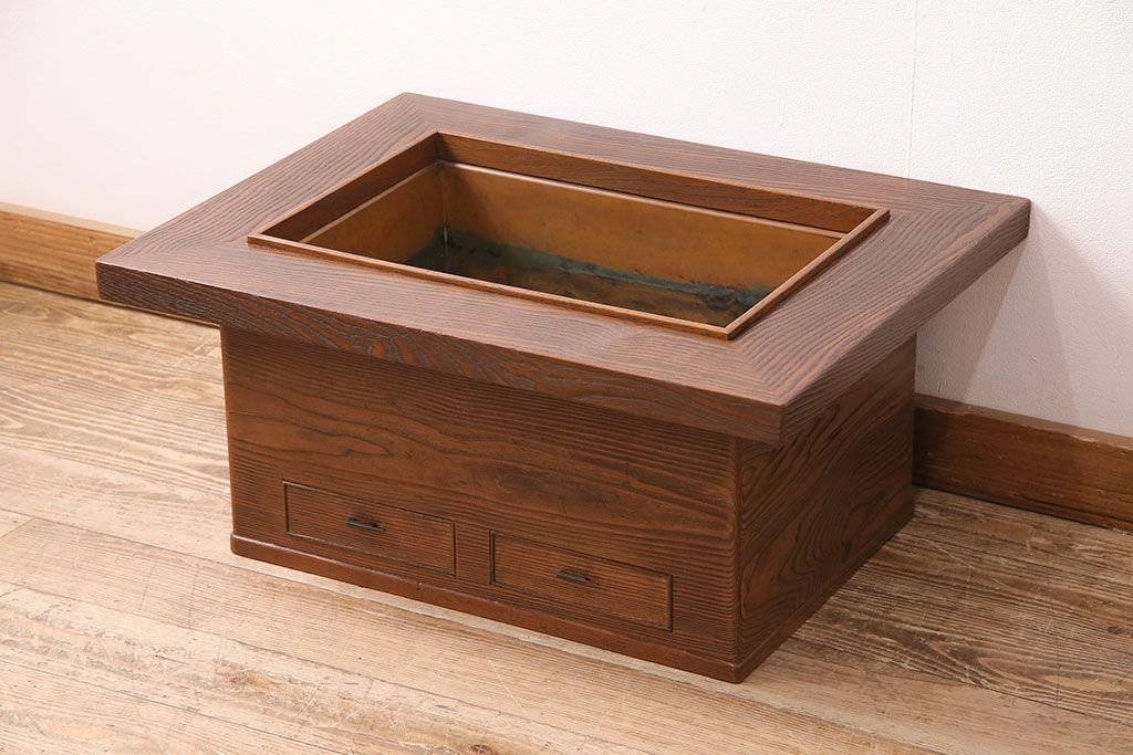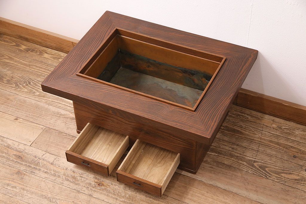 和製アンティーク 指物工芸家具 天板桑材・本体杉材 浮造り仕上げが上質な和の雰囲気を高める木製角火鉢(囲炉裏)(R-048015)