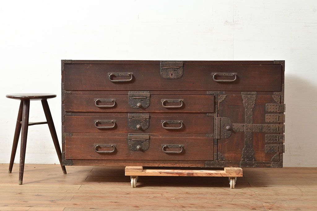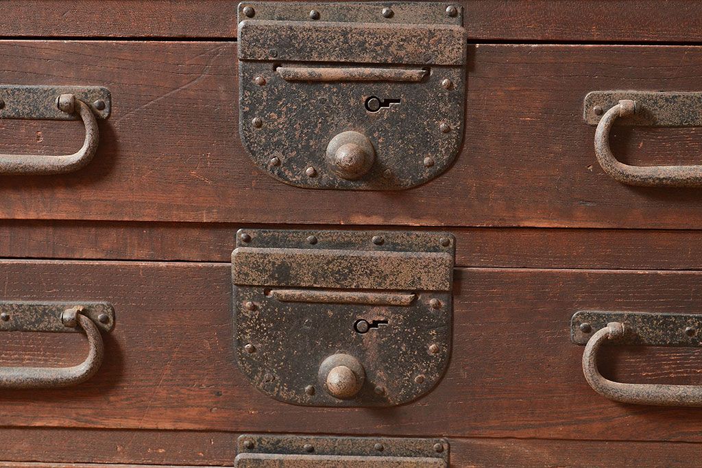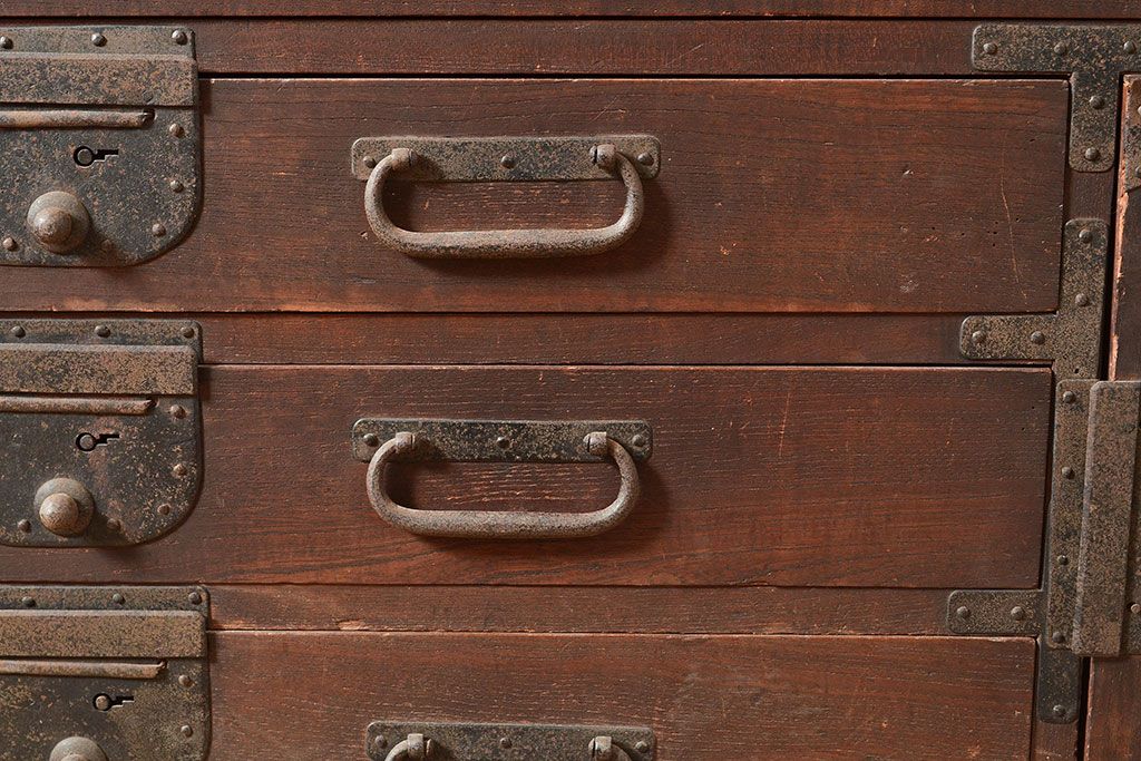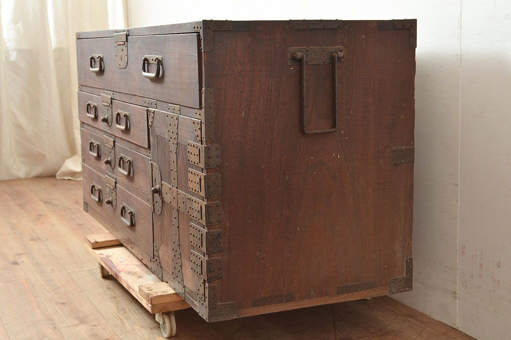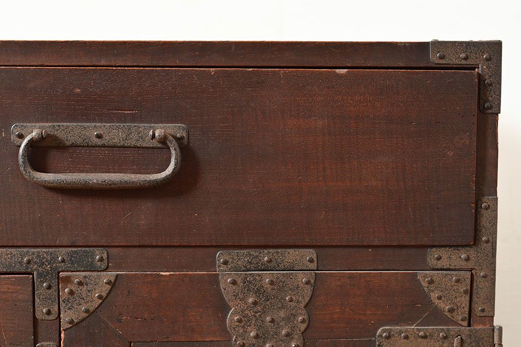 和製アンティーク 立派な金具が目を引く刀箪笥(箪笥ローボード、ローチェスト、引き出し)(R-047409)
