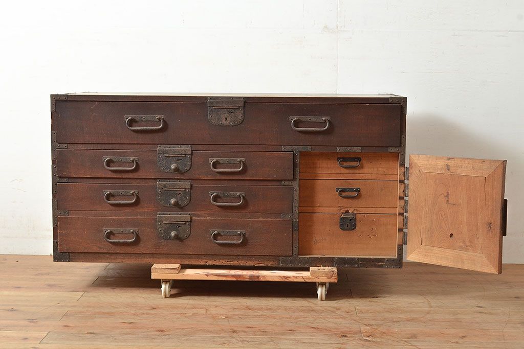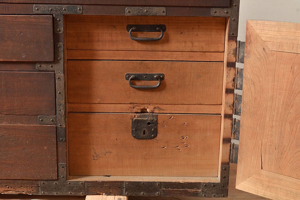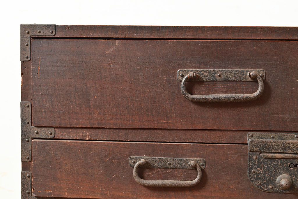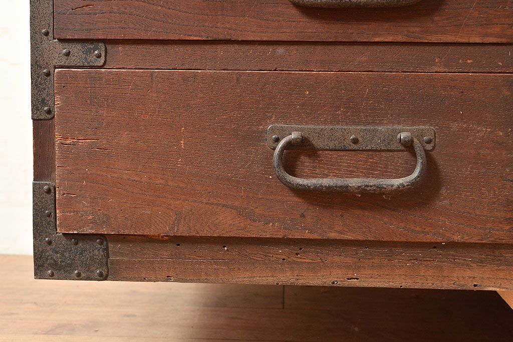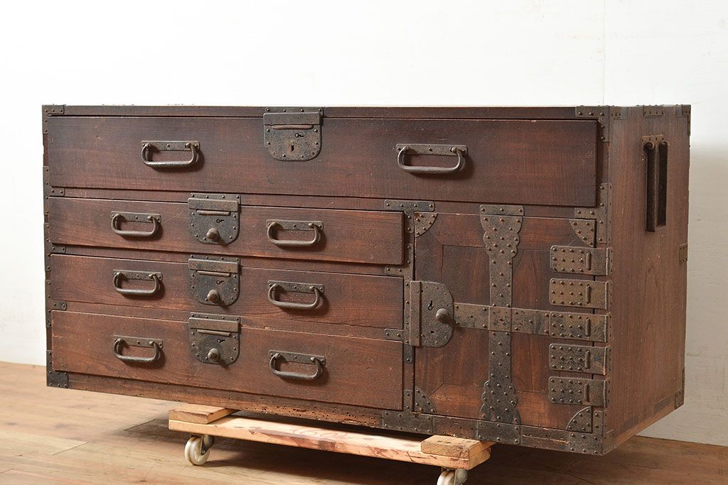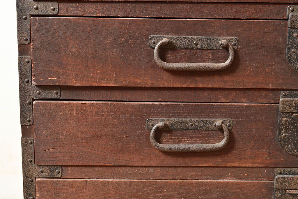 和製アンティーク 立派な金具が目を引く刀箪笥(箪笥ローボード、ローチェスト、引き出し)(R-047409)