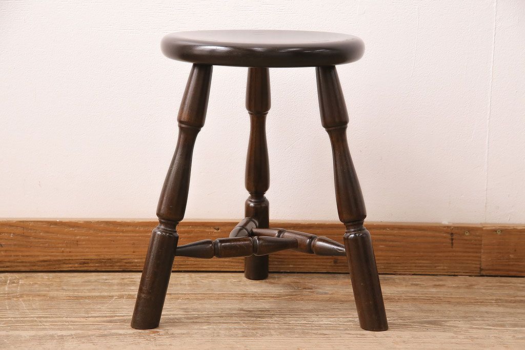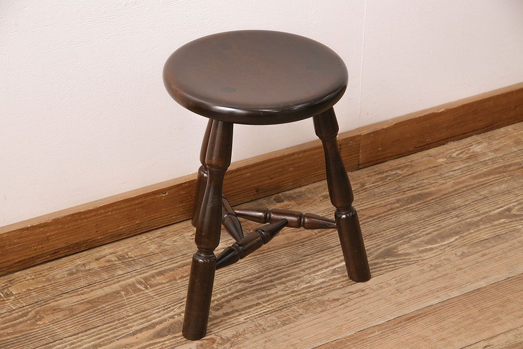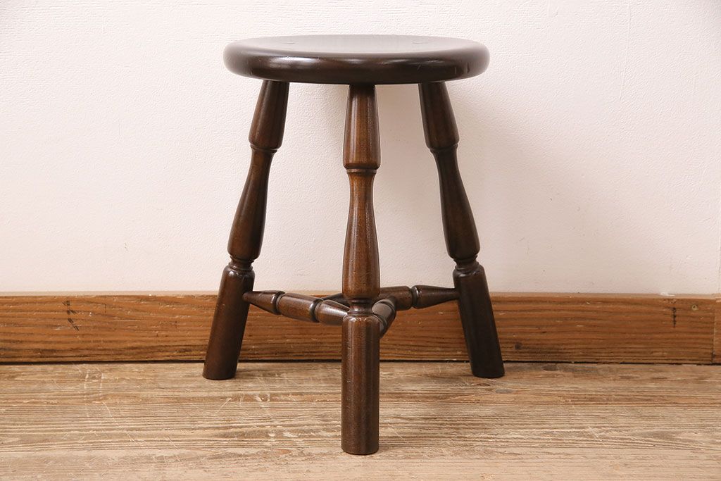 民芸家具 > 中古 松本民芸家具 花台としても活躍する温もりあふれる三脚スツール(椅子、花台)(R-048080)