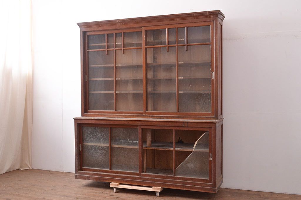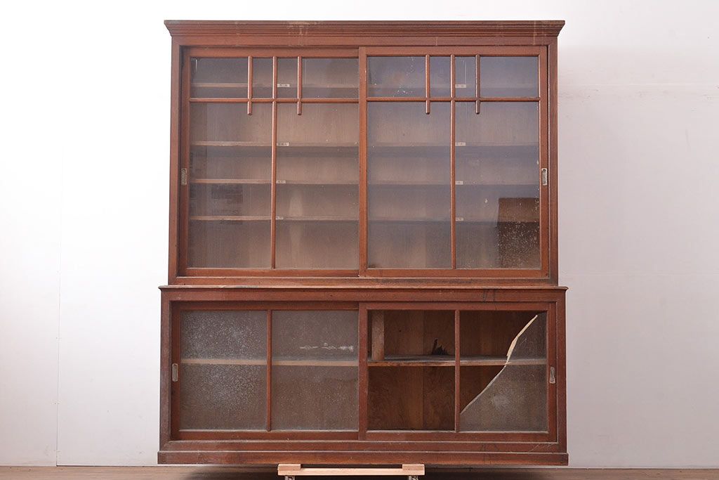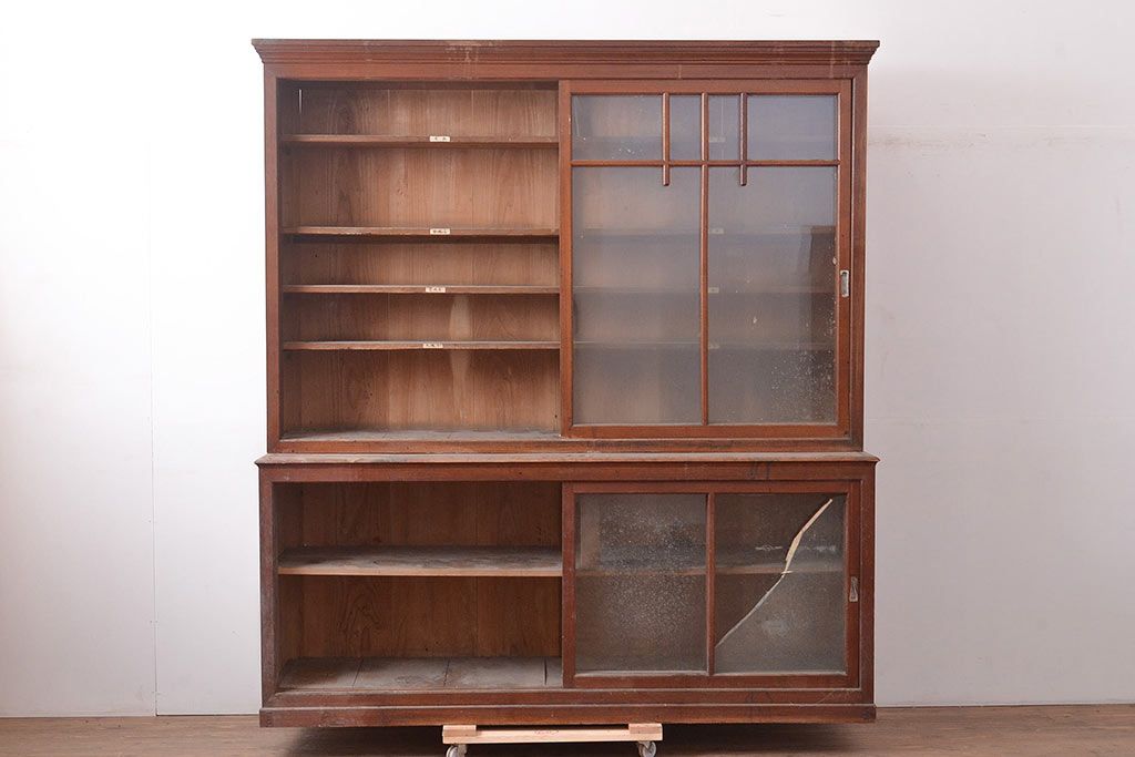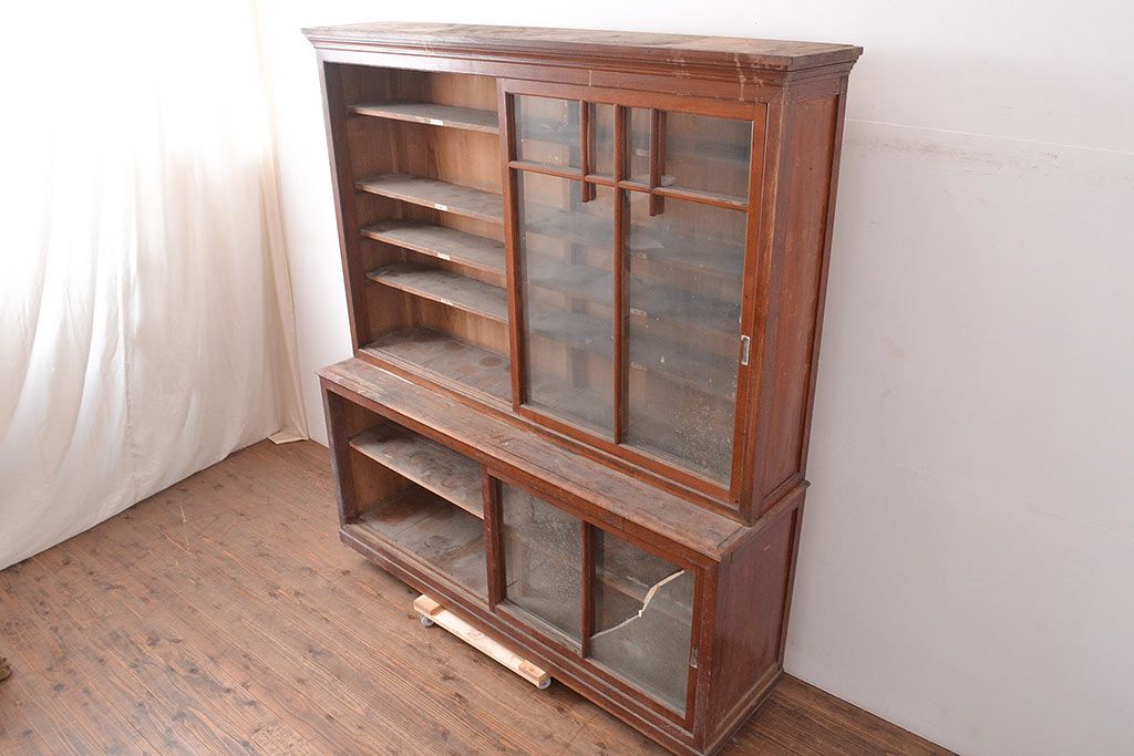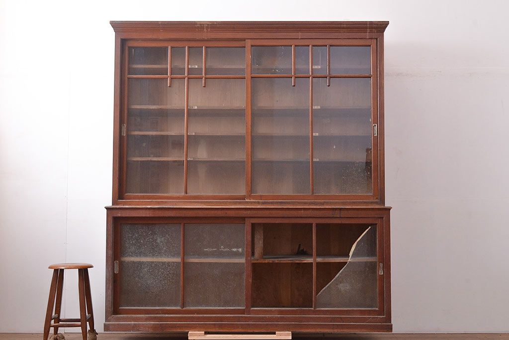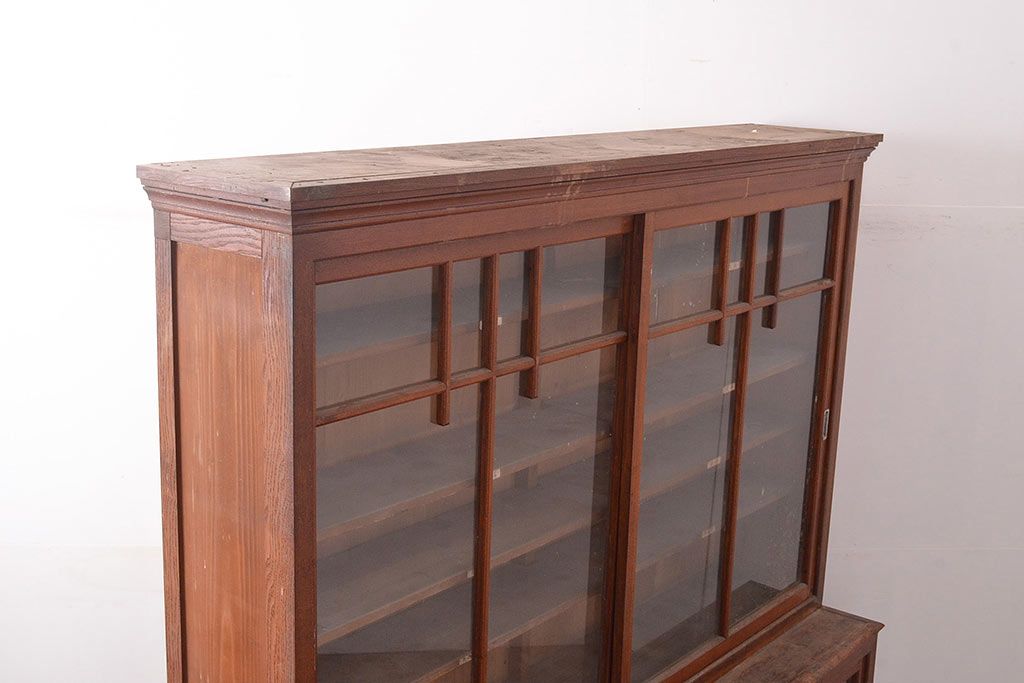 和製アンティーク 大正昭和初期 前面タモ材 ノスタルジックな雰囲気漂う上手物の重ね戸棚(収納棚、飾り棚、キャビネット)(R-047863)です。
