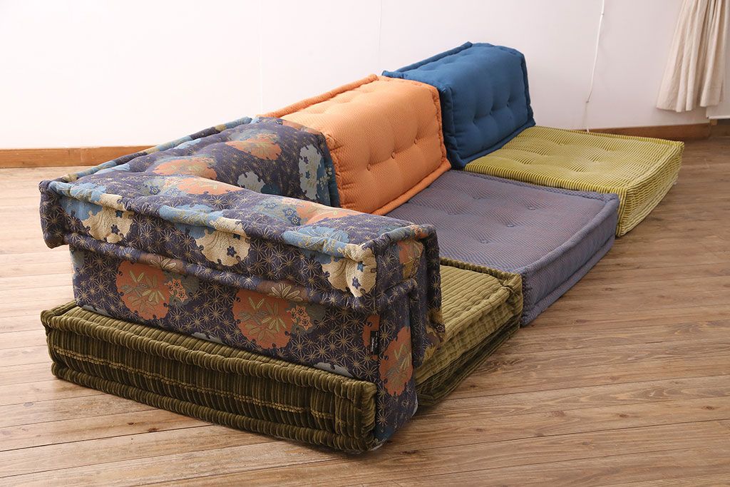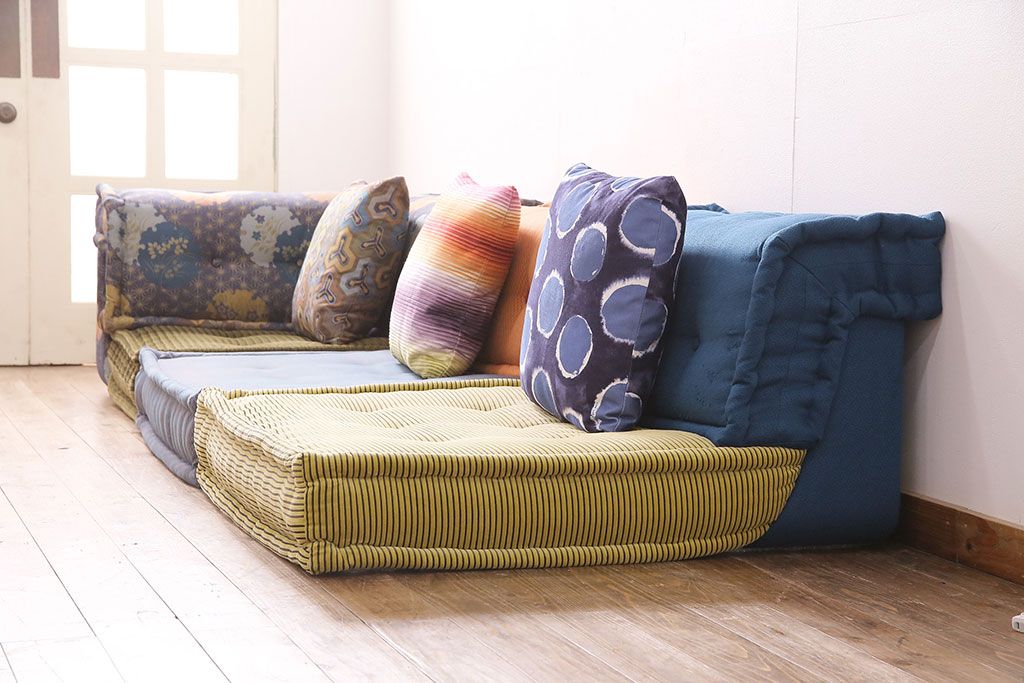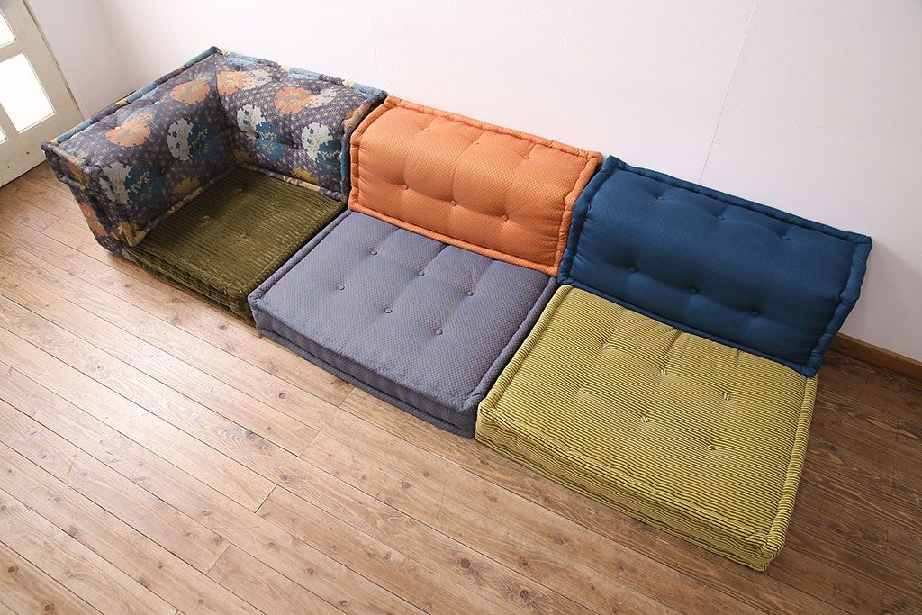 ラフジュ工房> ソファ> 大型ソファ > 中古 一際目を引く個性的なデザインが素敵なRoche Bobois(ロッシュボボア)のソファ&クッションセット(3人掛け、2人掛け、1人掛け)(定価約110万円)(R-047576)