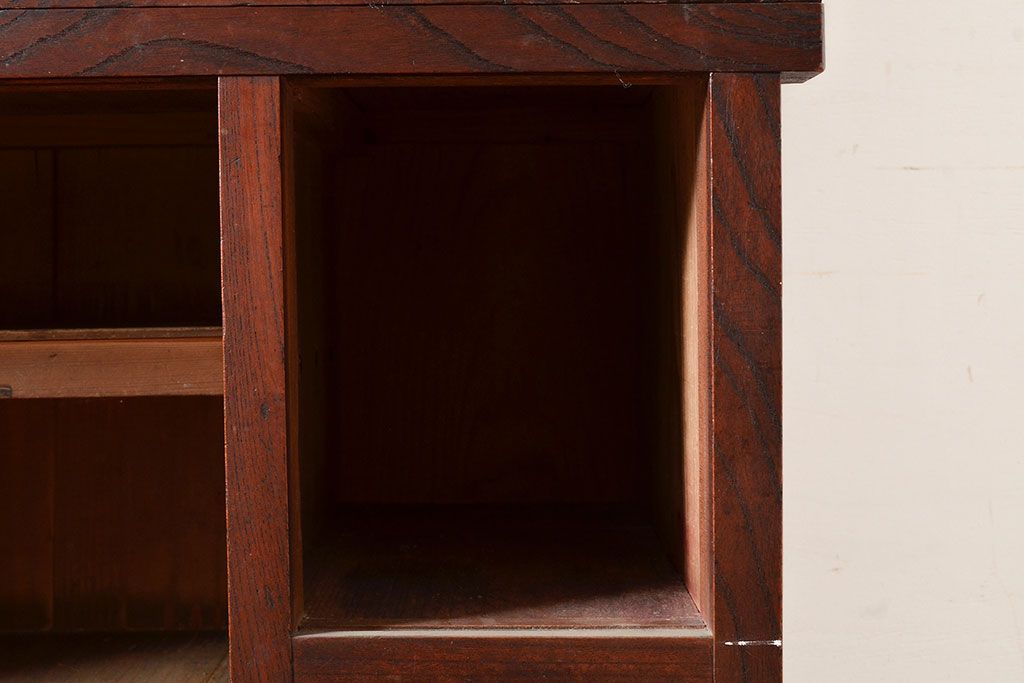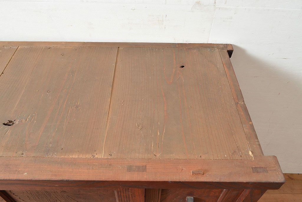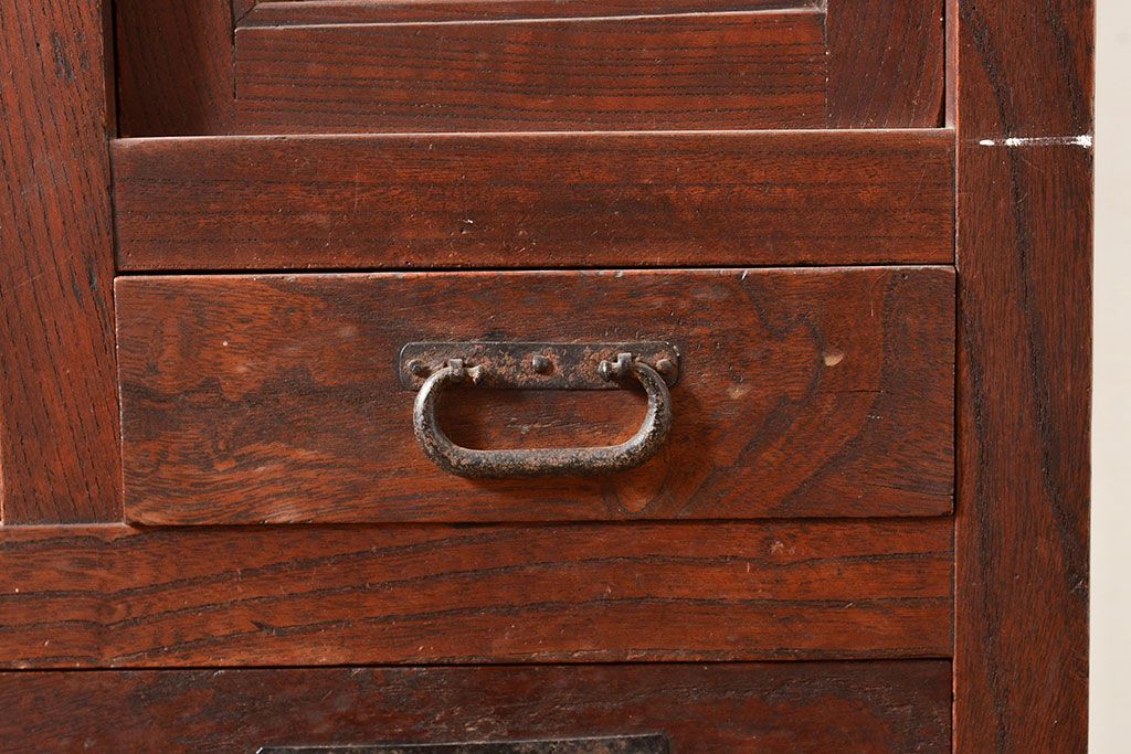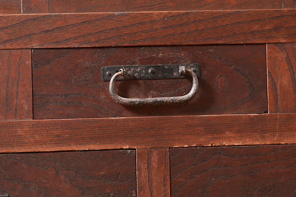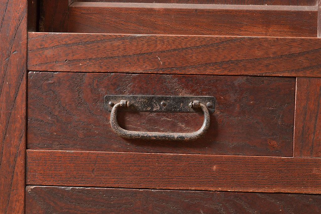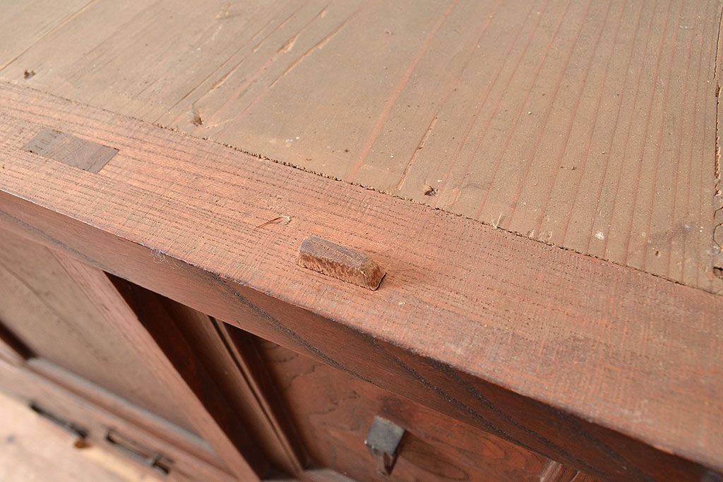 和箪笥> 茶箪笥・茶棚 > 和製アンティーク 和の趣たっぷりの前面ケヤキ材製の関東水屋箪笥(収納棚、茶箪笥、キャビネット)(R-047538)