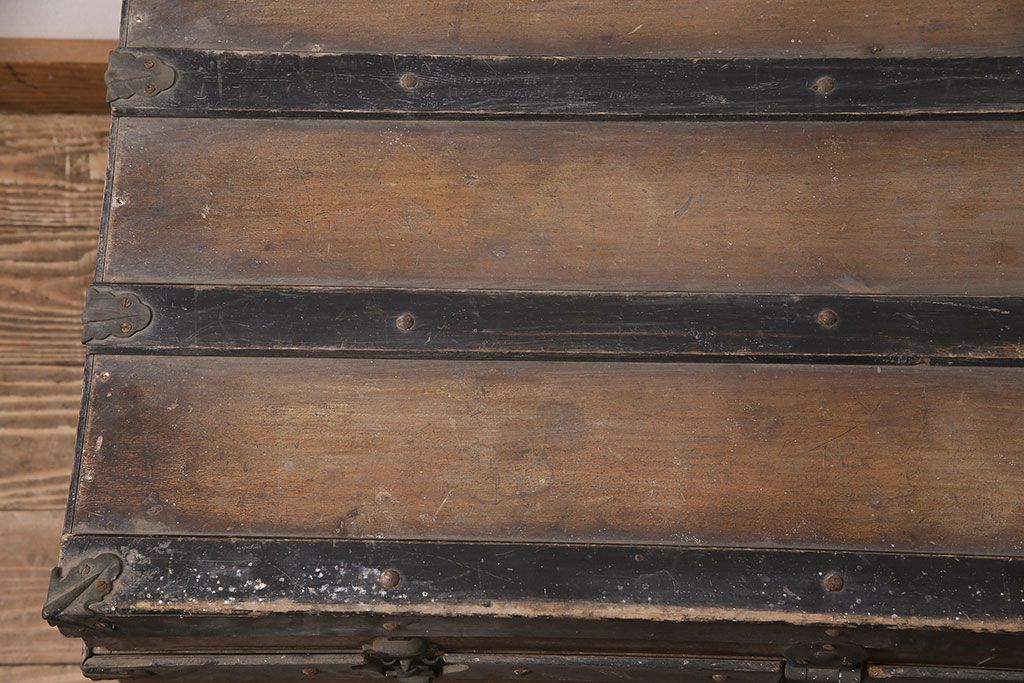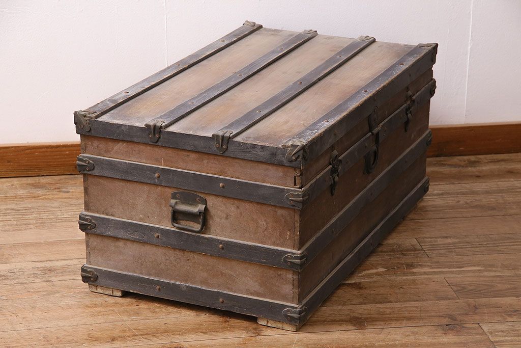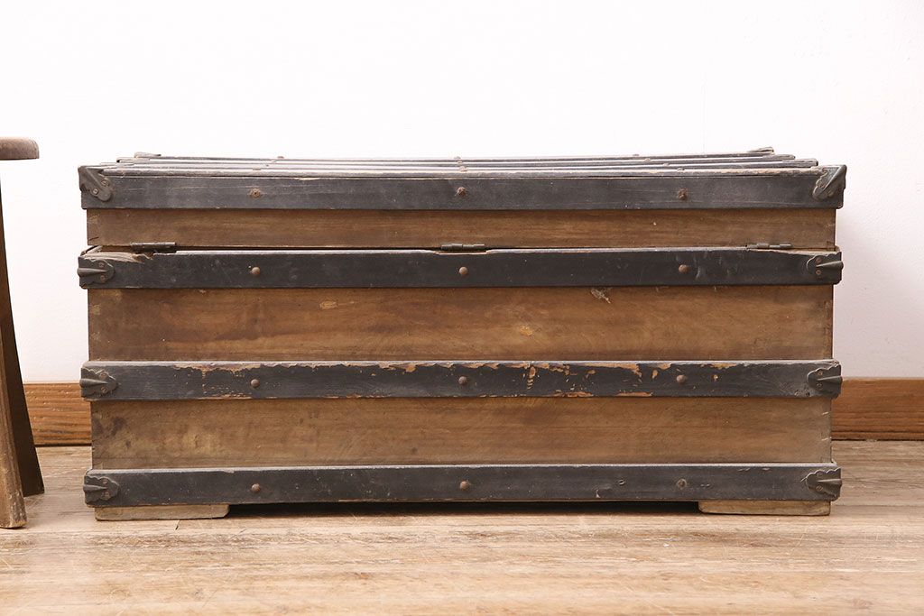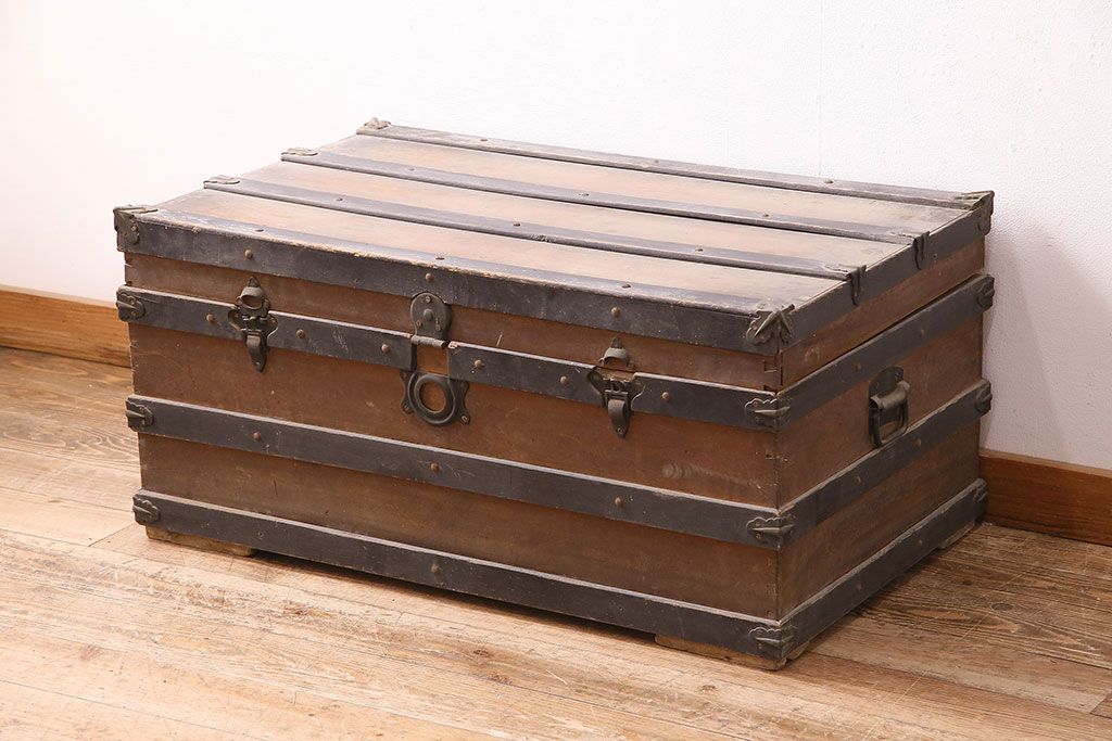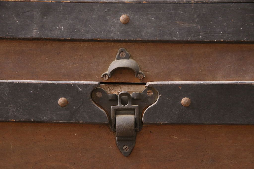 店舗什器 > 和製アンティーク 大正昭和初期 まるで宝箱のような佇まいが抜群の存在感を放つトランク(木箱、衣類箱、収納箱)(R-047639)