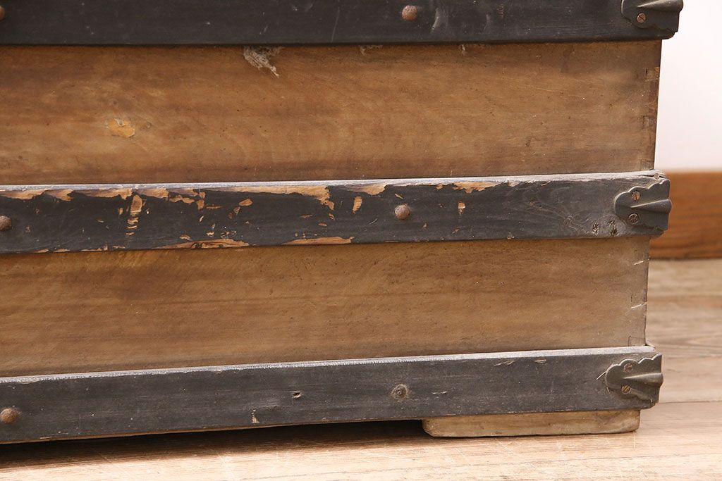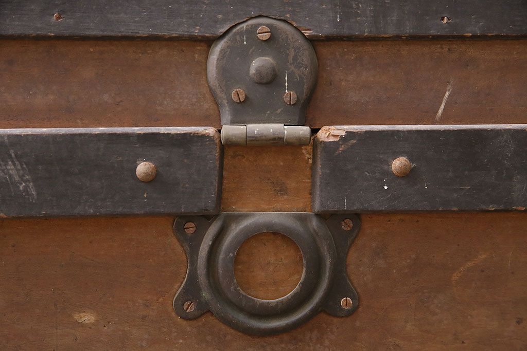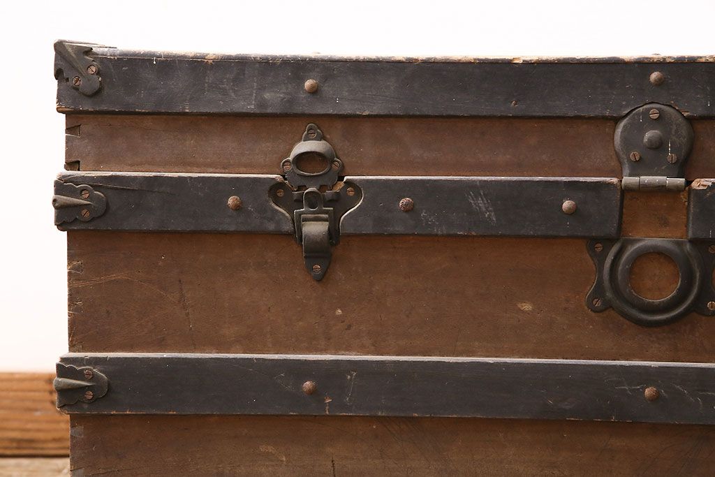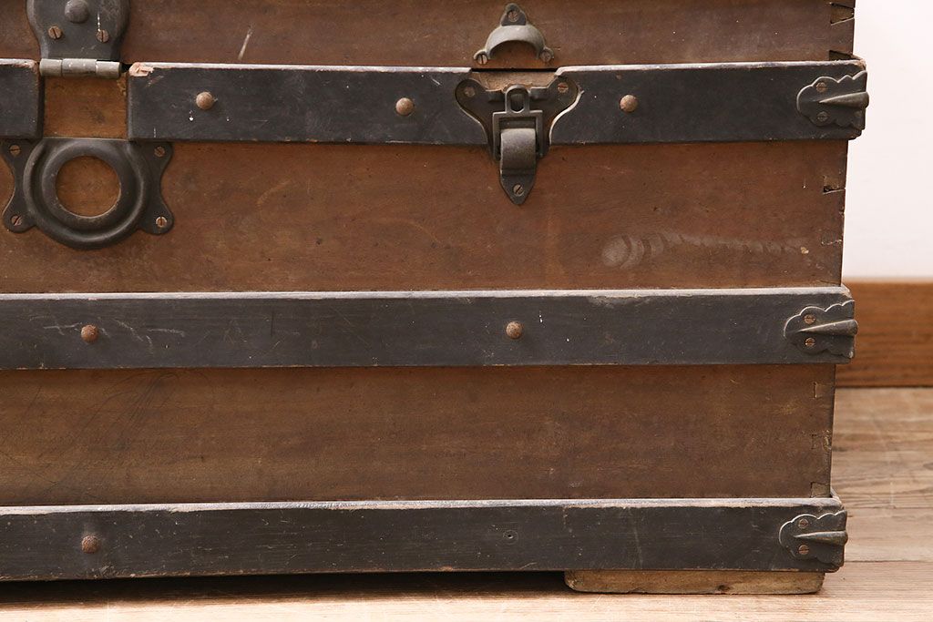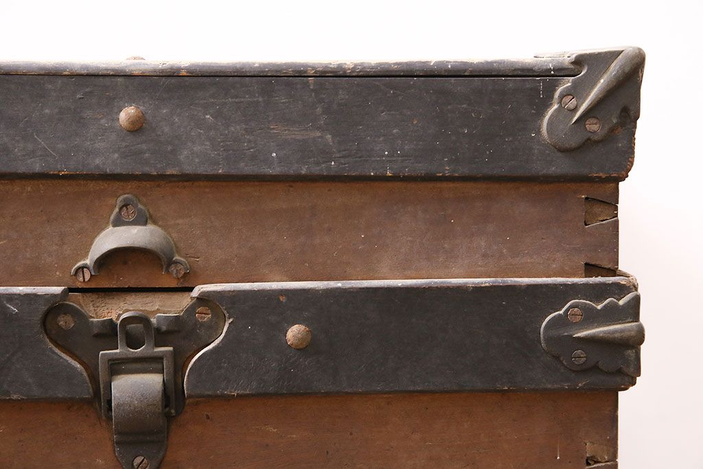 小物収納・トランク > 和製アンティーク 大正昭和初期 まるで宝箱のような佇まいが抜群の存在感を放つトランク(木箱、衣類箱、収納箱)(R-047639)
