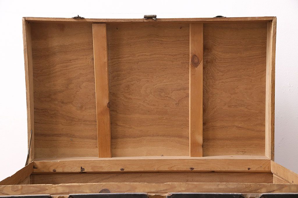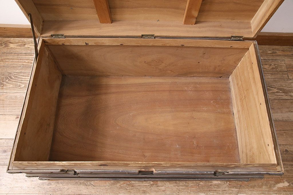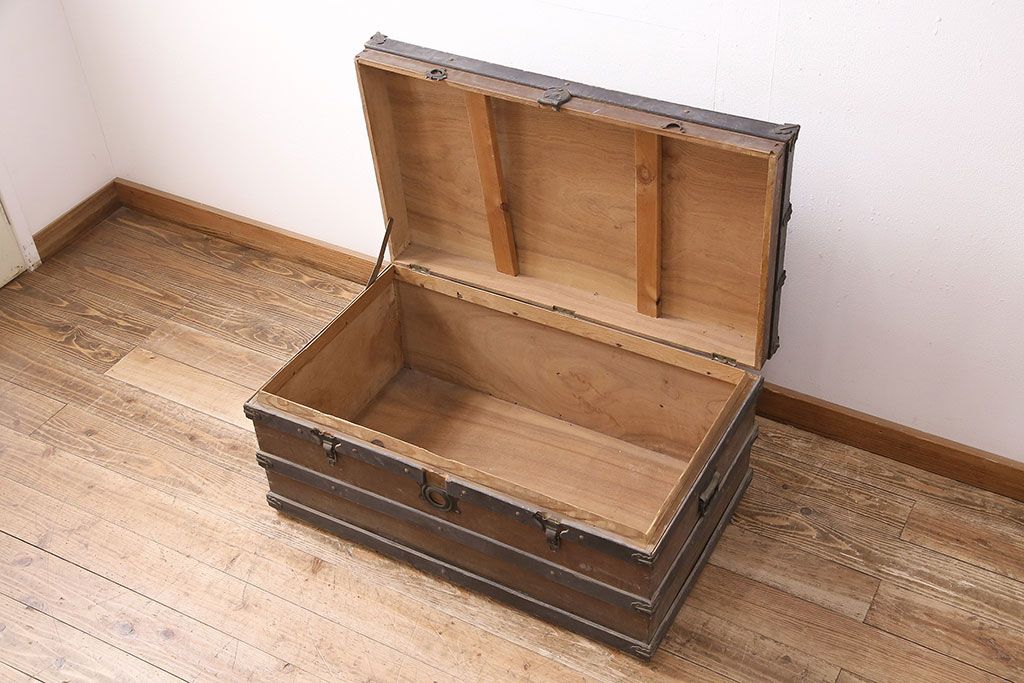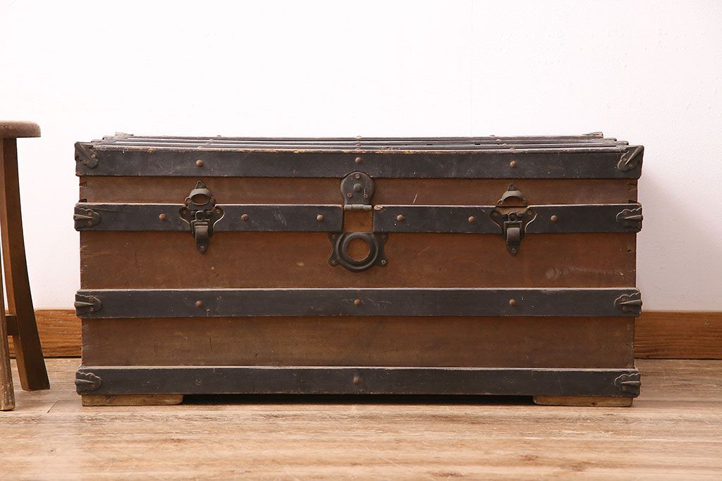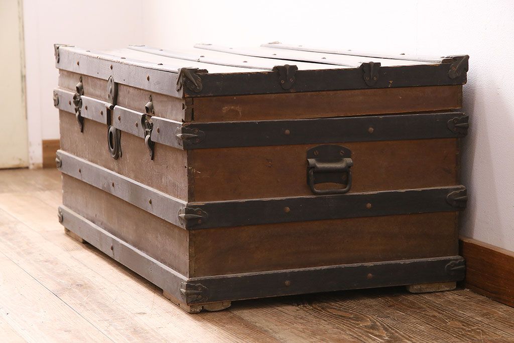 小物収納・トランク > 和製アンティーク 大正昭和初期 まるで宝箱のような佇まいが抜群の存在感を放つトランク(木箱、衣類箱、収納箱)(R-047639)