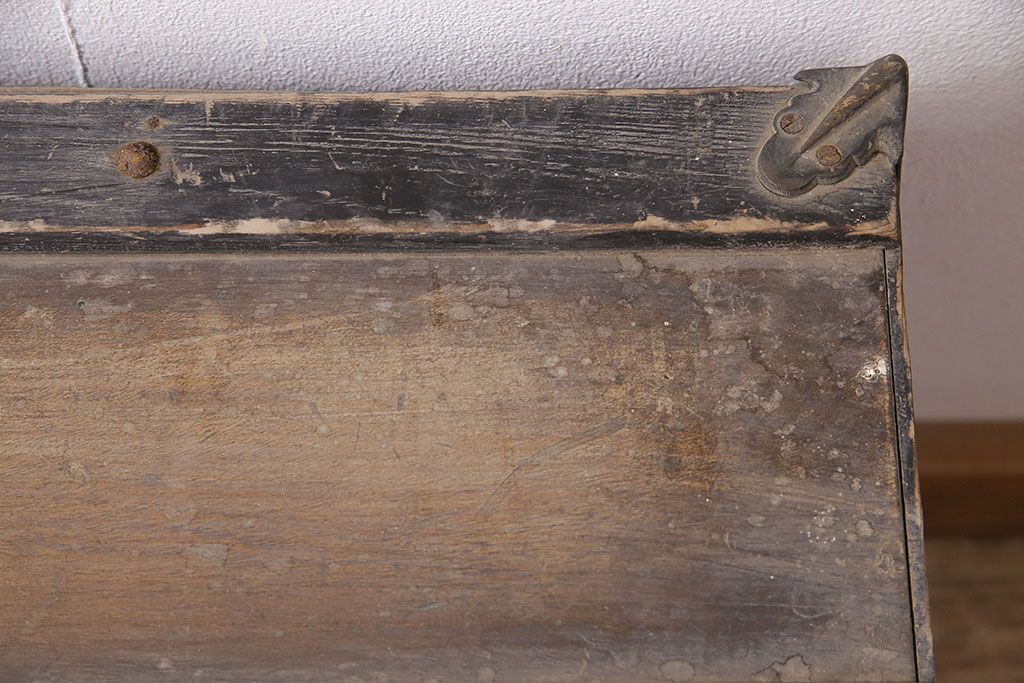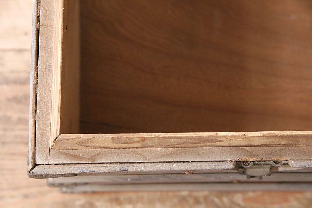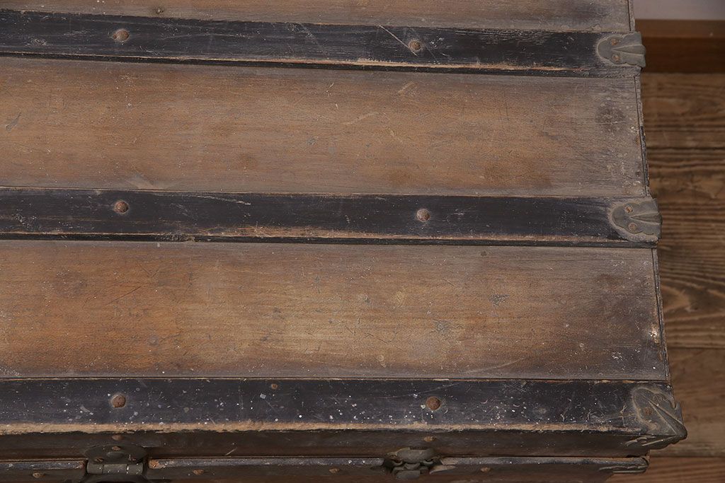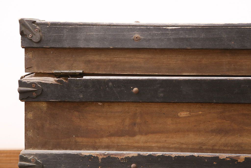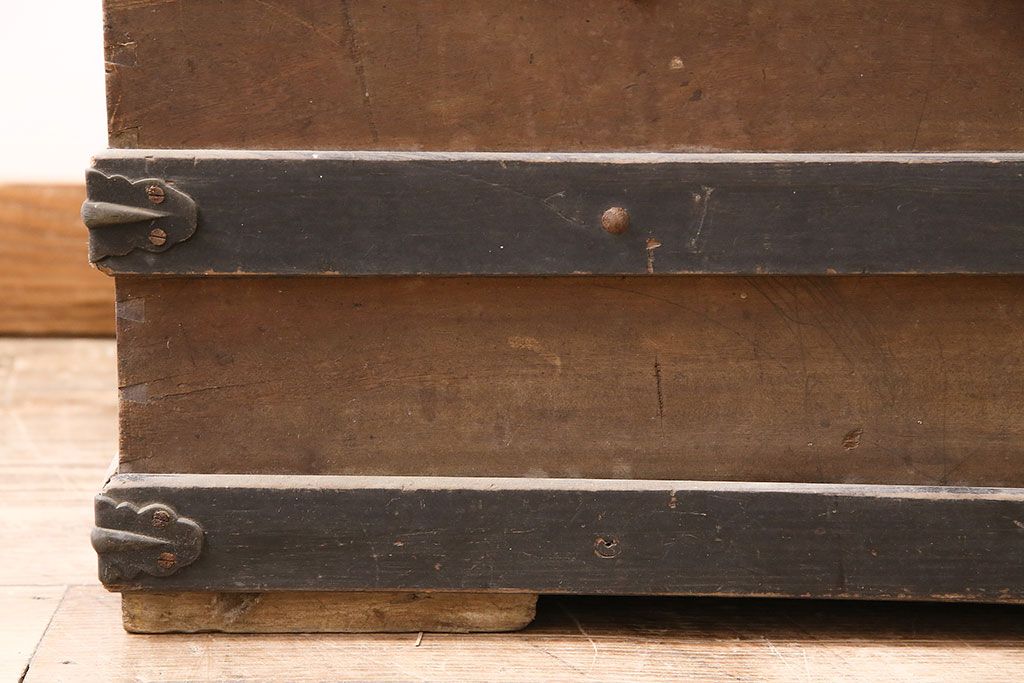 小物収納・トランク> 木箱 > 和製アンティーク 大正昭和初期 まるで宝箱のような佇まいが抜群の存在感を放つトランク(木箱、衣類箱、収納箱)(R-047639)