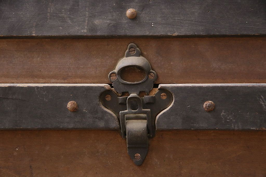 和製アンティーク 大正昭和初期 まるで宝箱のような佇まいが抜群の存在感を放つトランク(木箱、衣類箱、収納箱)(R-047639)