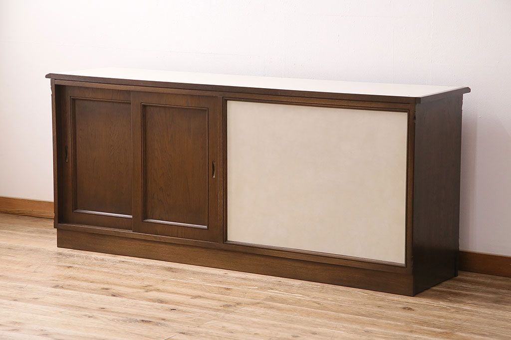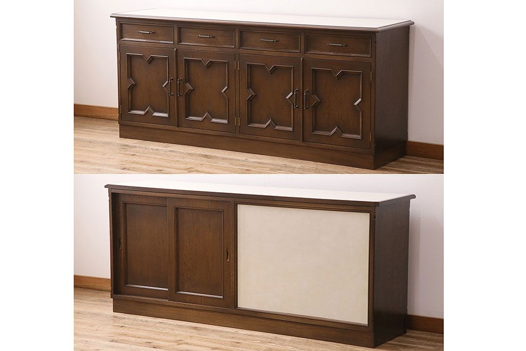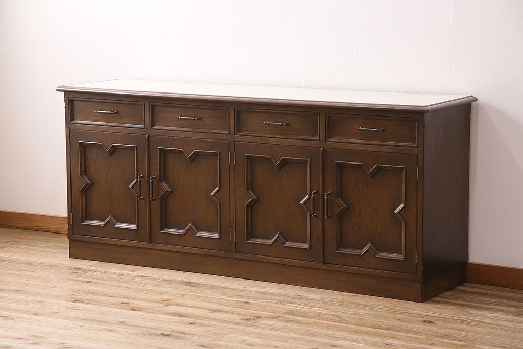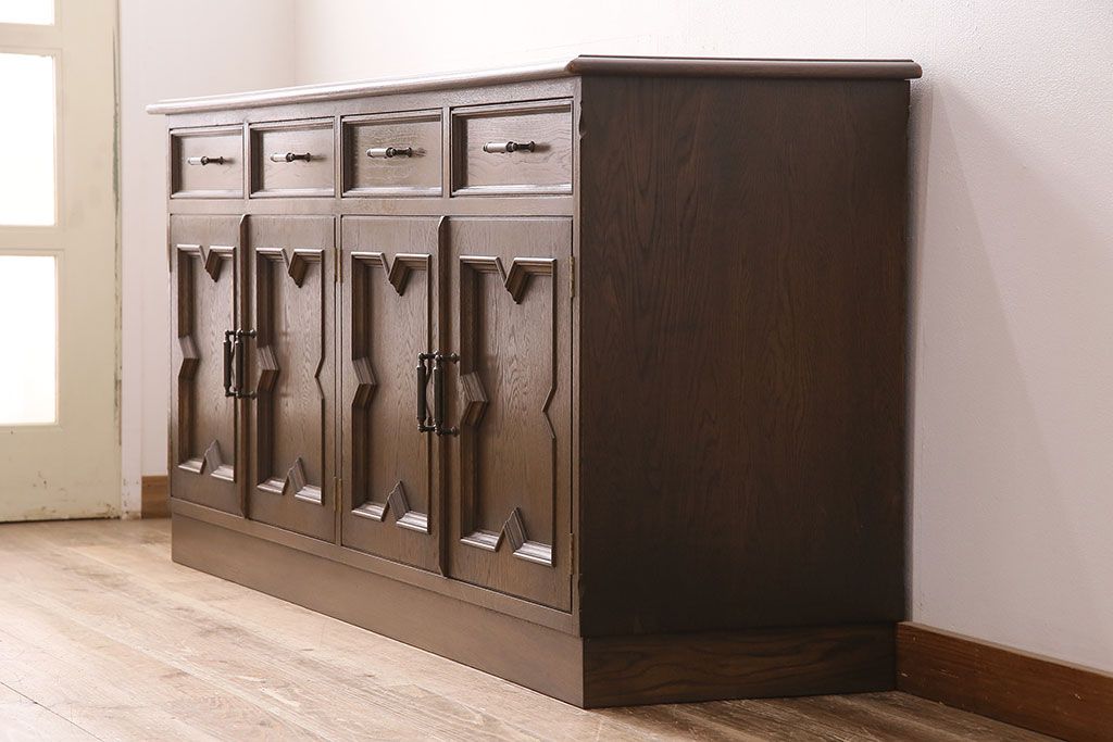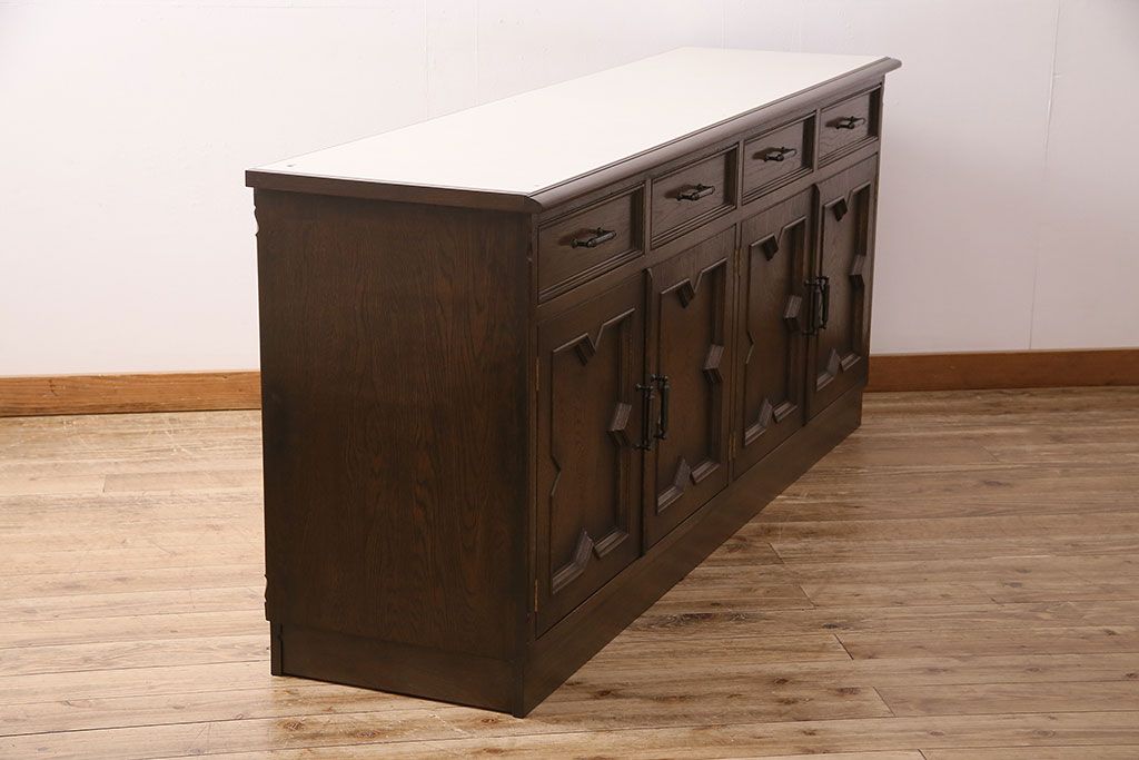 和製ビンテージ 神戸洋家具 永田良介商店 西洋アンティーク家具を思わせるキッチンカウンター(サイドボード、収納棚、戸棚)(R-047630)