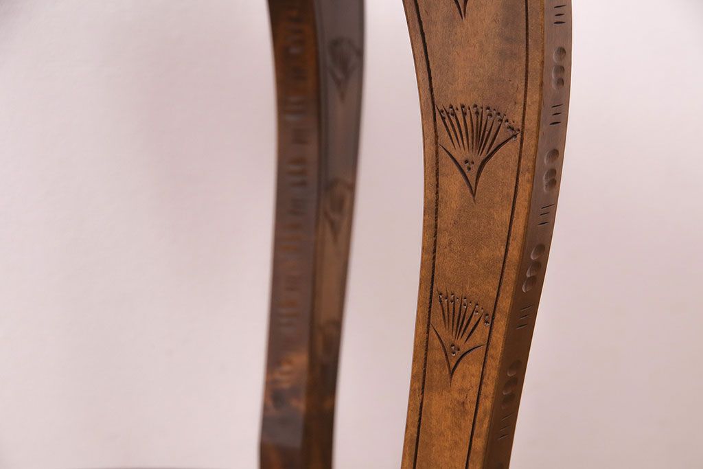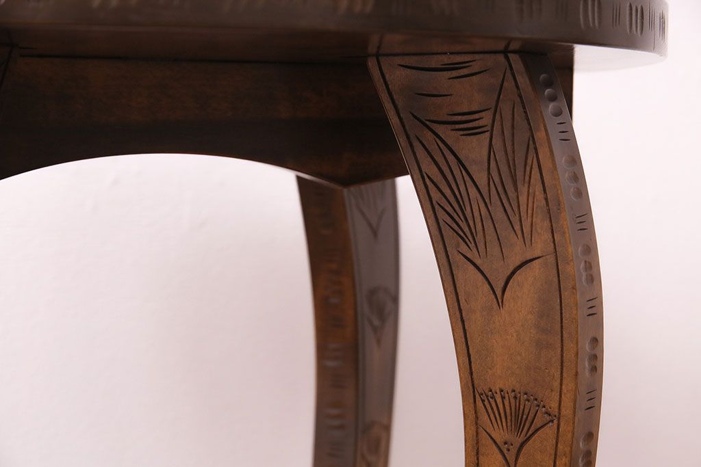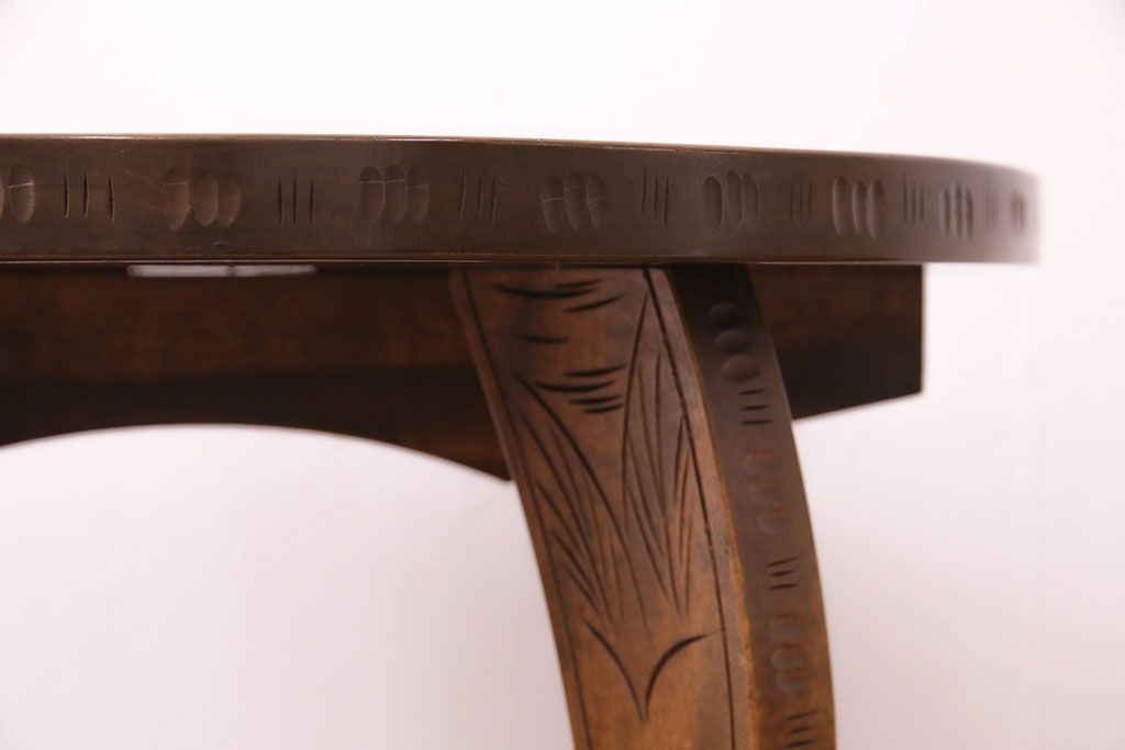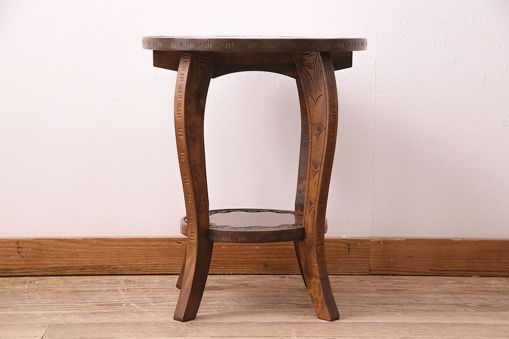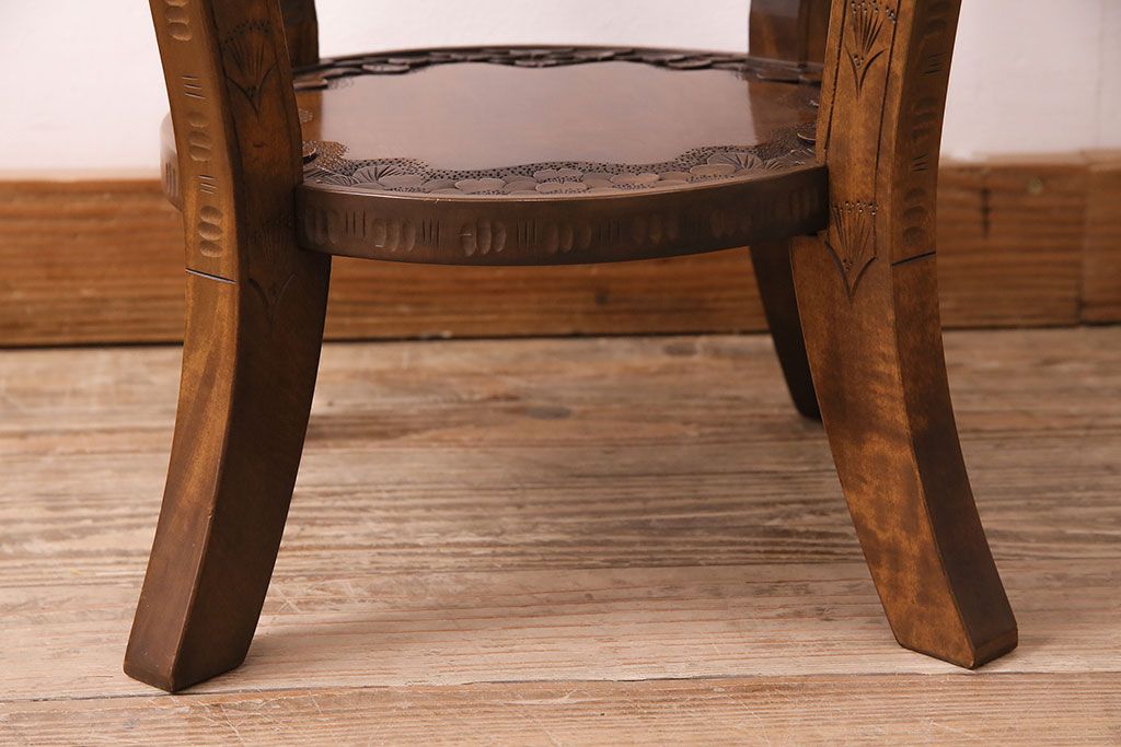 民芸家具 > 中古 伝統工芸 軽井沢彫り 華やかな桜の彫刻が見事なサイドテーブル(丸テーブル、花台、飾り台、カフェテーブル)(R-047635)