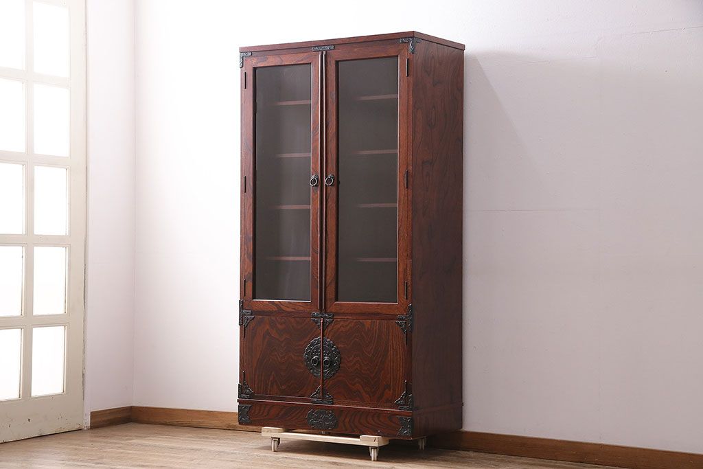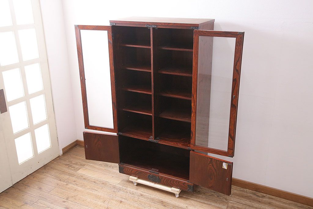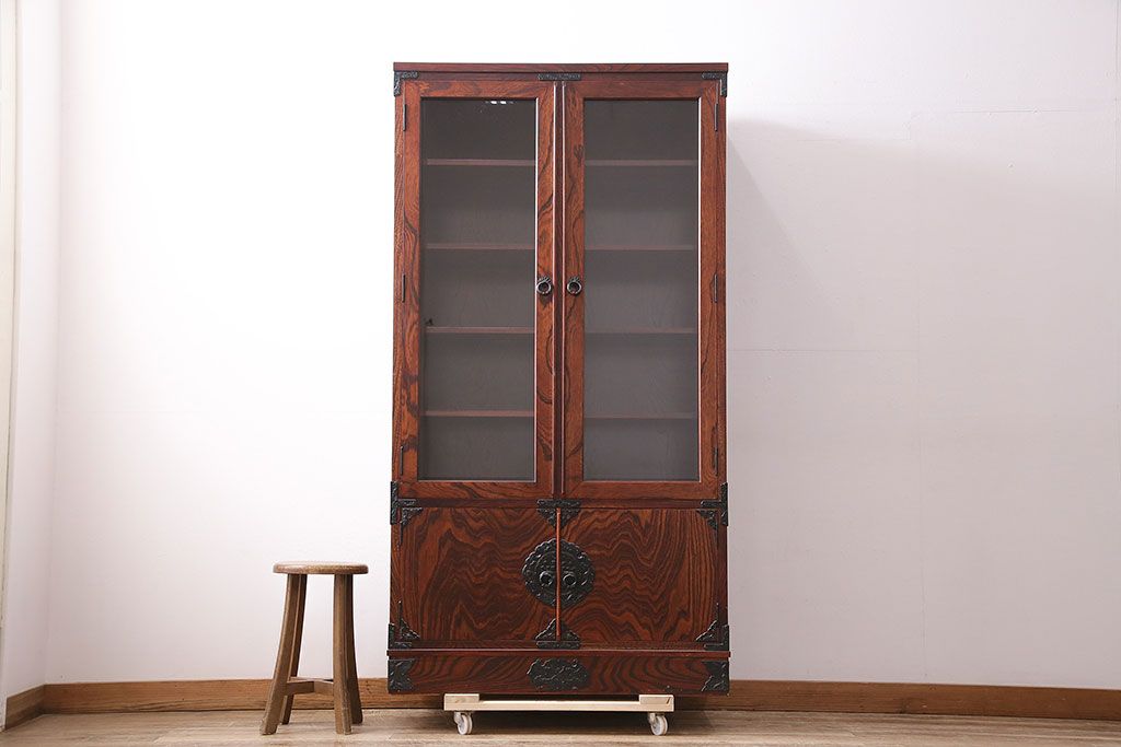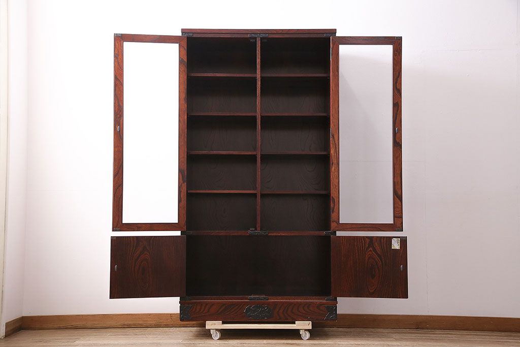 和箪笥 > 中古 伝統民芸 岩谷堂箪笥 No.233 拭き漆塗りが上品なキャビネット(書棚、本箱、ブックケース)(定価約45万円)