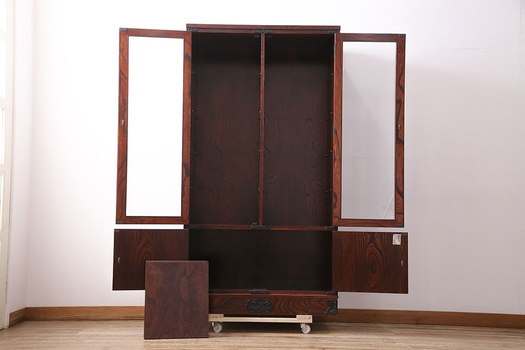 中古 伝統民芸 岩谷堂箪笥 No.233 拭き漆塗りが上品なキャビネット(書棚、本箱、ブックケース)(定価約45万円)