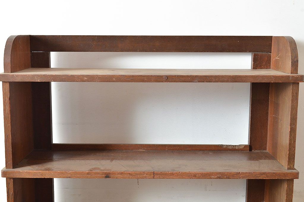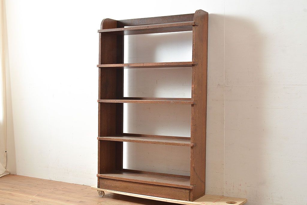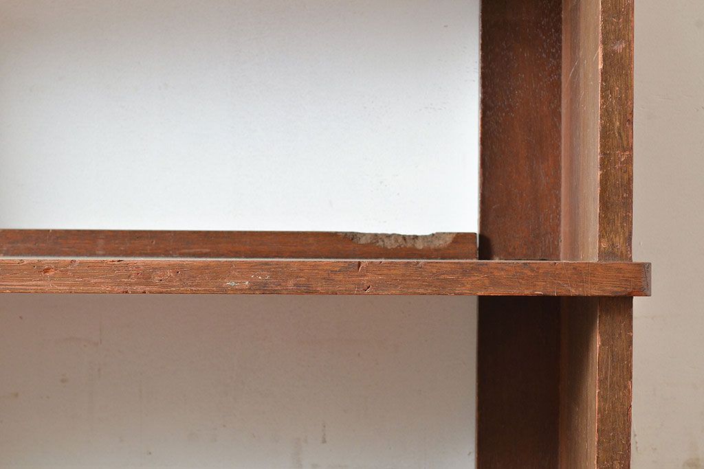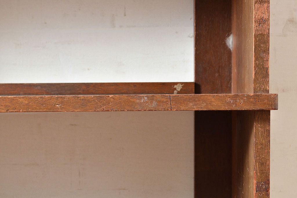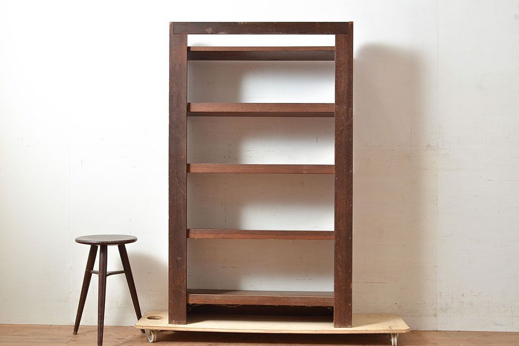 昭和レトロ 見せる収納にぴったり!素朴な木味がぬくもりを感じるラワン材製の本棚(オープンラック、シェルフ)(R-047535)