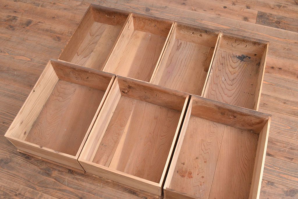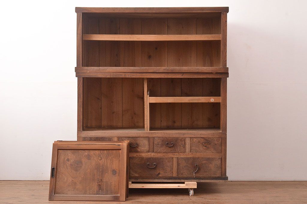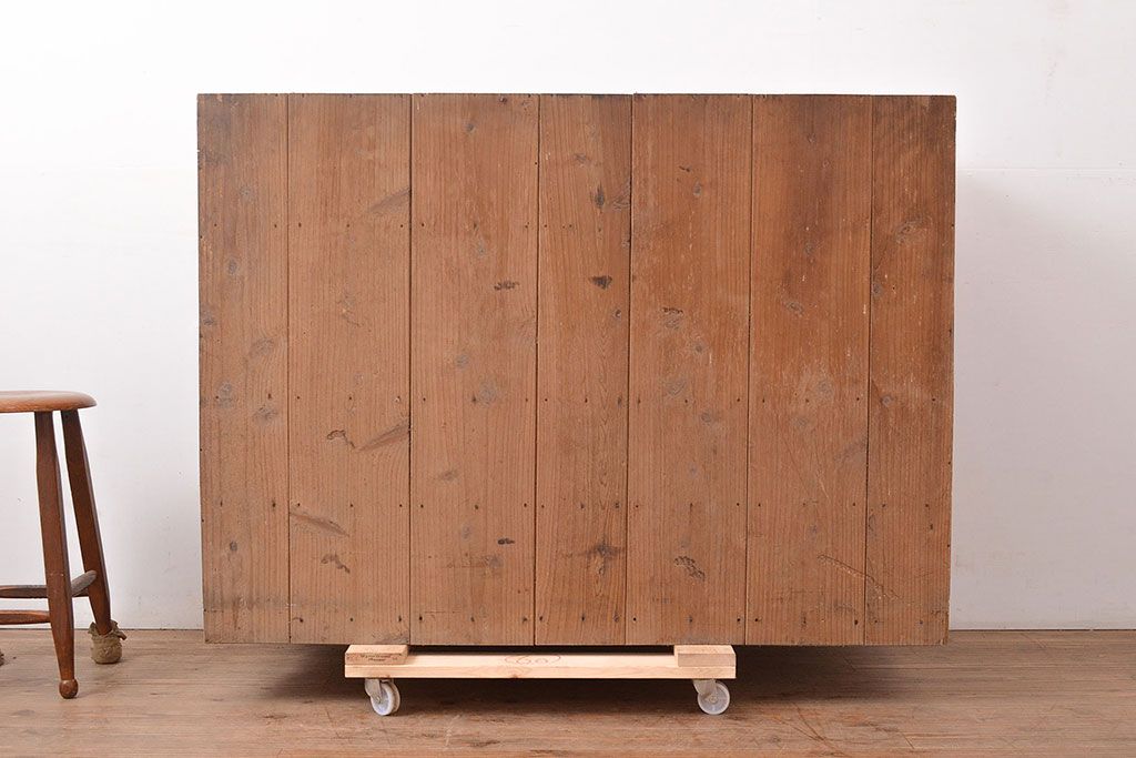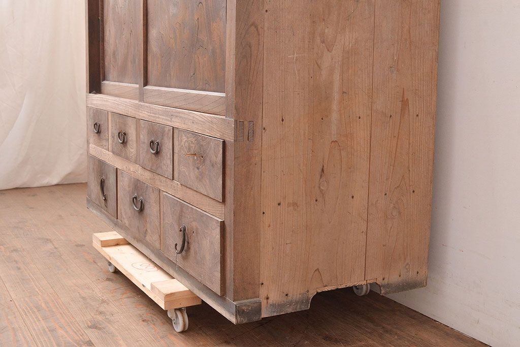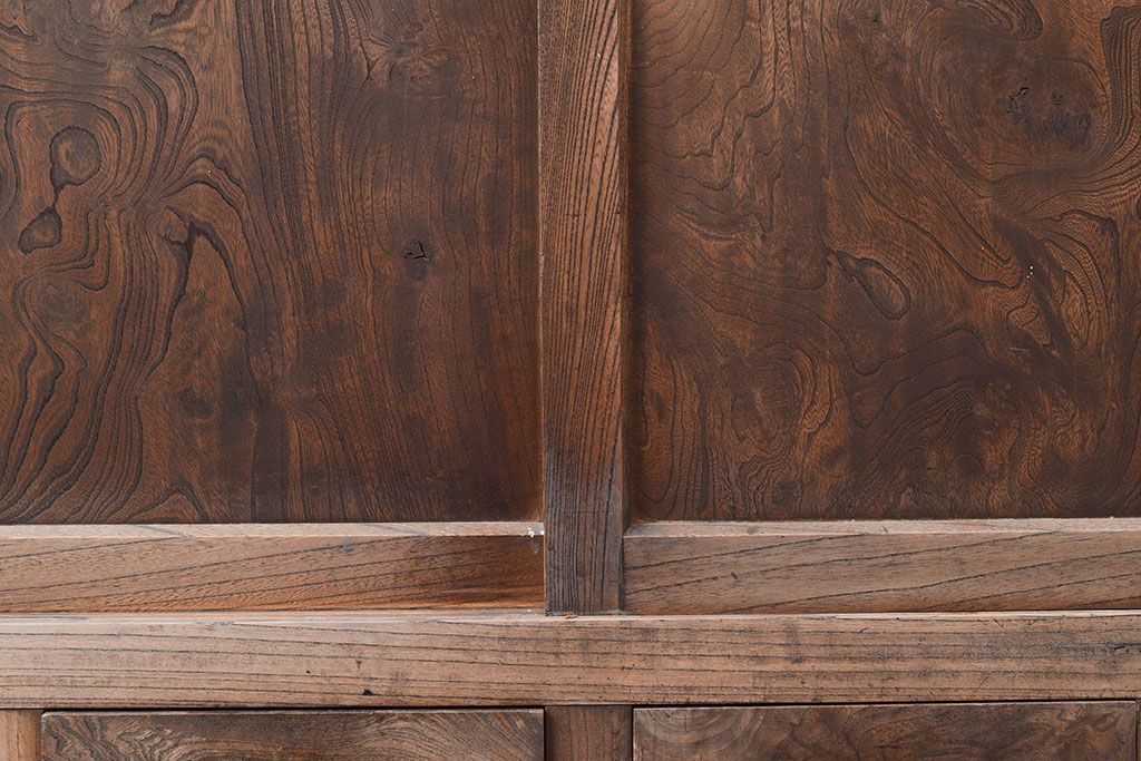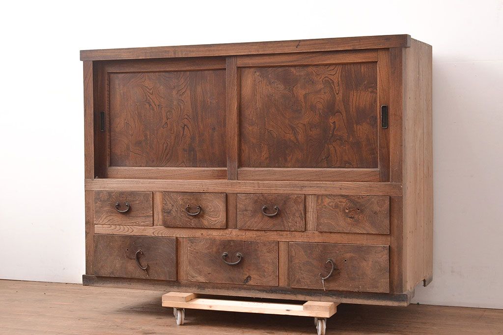 和箪笥 > 和製アンティーク 前面ケヤキ材 引き出し付き 味のある木肌と力強い杢目が魅力的な箪笥サイドボード(時代箪笥、収納棚)(R-047860)