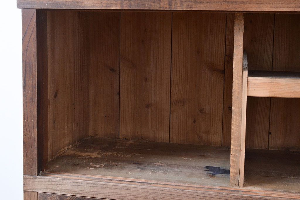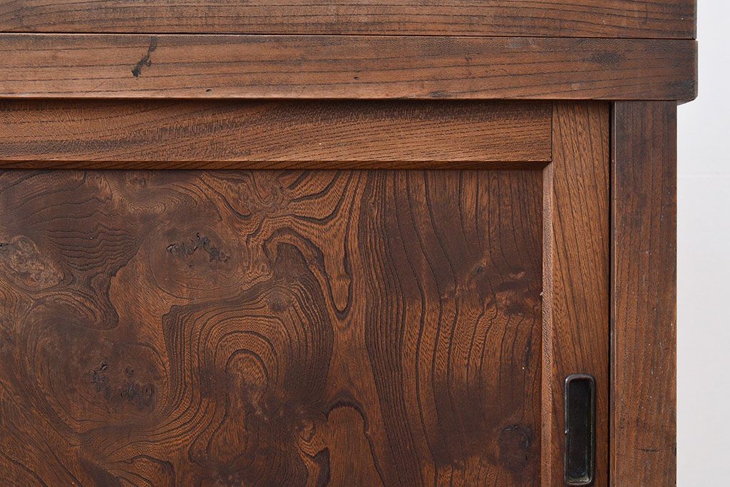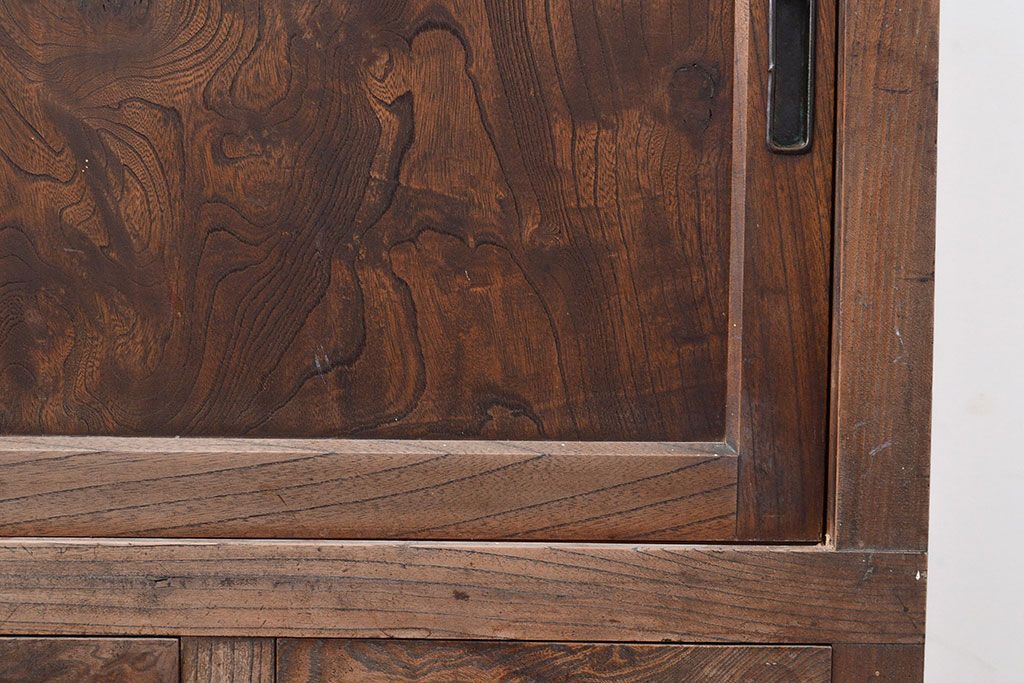 キャビネット・戸棚> サイドボード > 和製アンティーク 前面ケヤキ材 引き出し付き 味のある木肌と力強い杢目が魅力的な箪笥サイドボード(時代箪笥、収納棚)(R-047860)