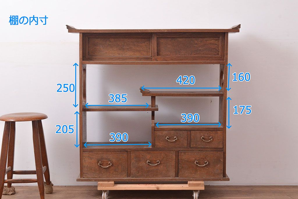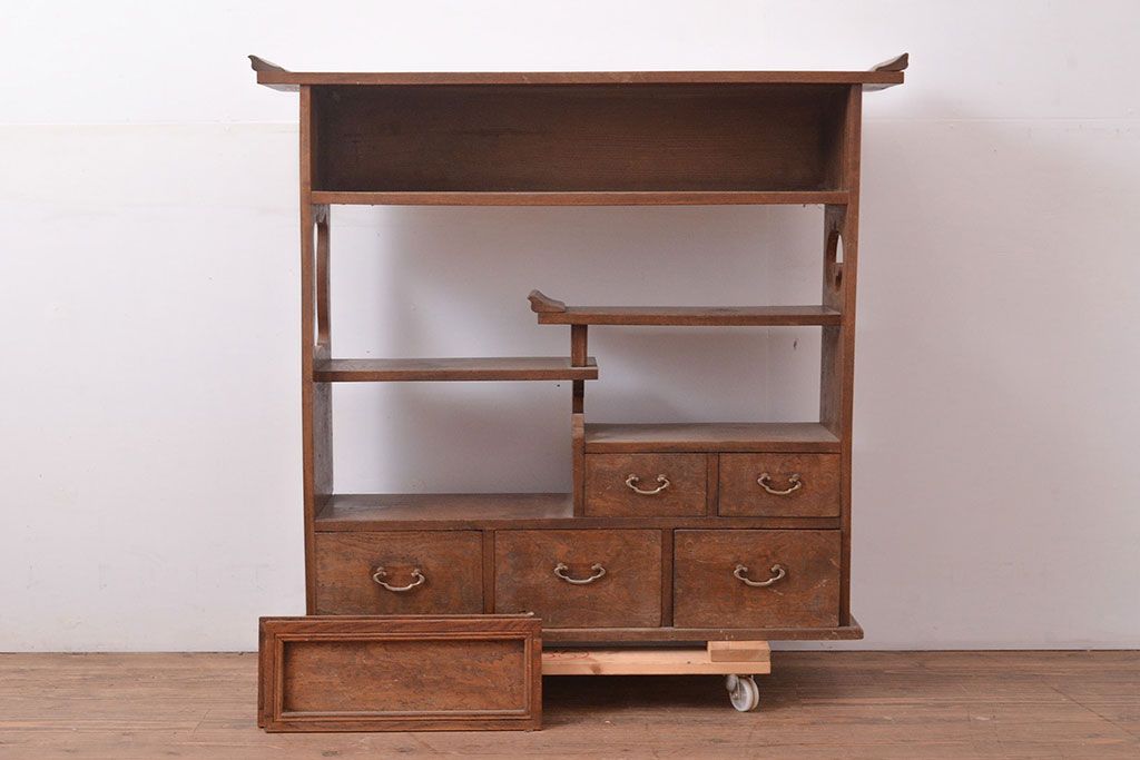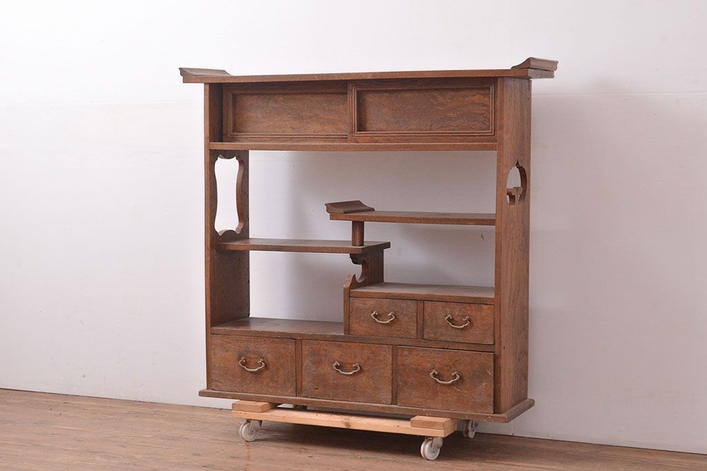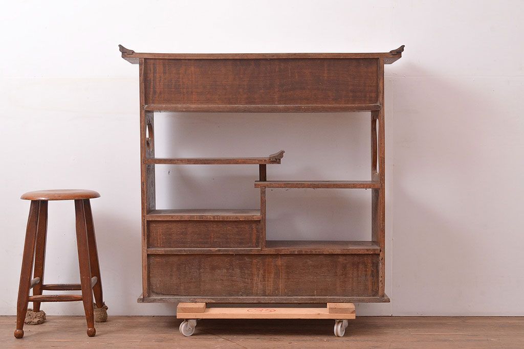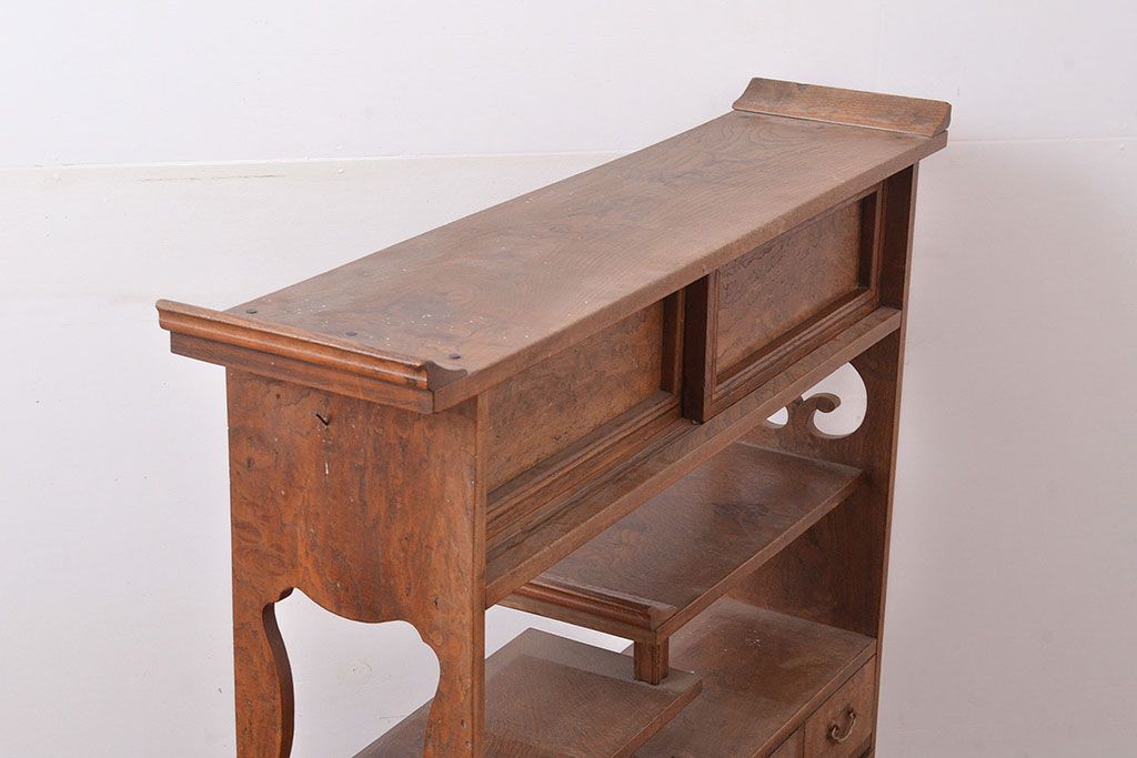 和製アンティーク 総ケヤキ材・前面玉杢 独特な杢目が上品な和の雰囲気を作り出す飾り棚(茶棚)(R-047310)