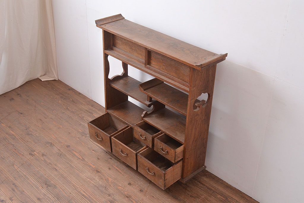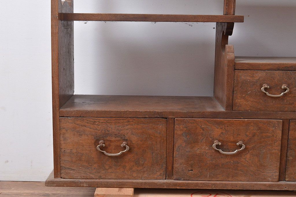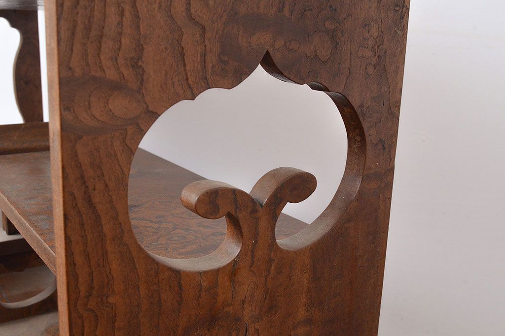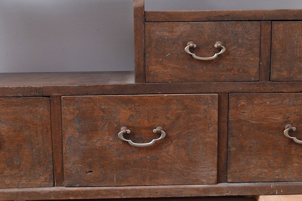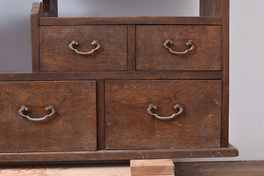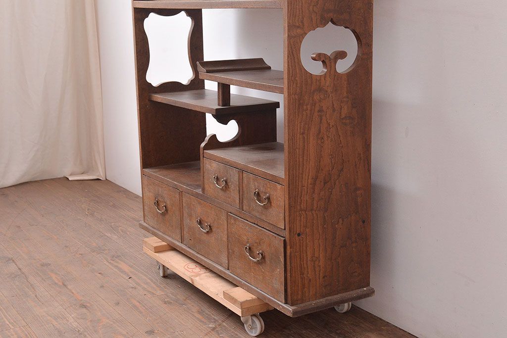 和製アンティーク 総ケヤキ材・前面玉杢 独特な杢目が上品な和の雰囲気を作り出す飾り棚(茶棚)(R-047310)