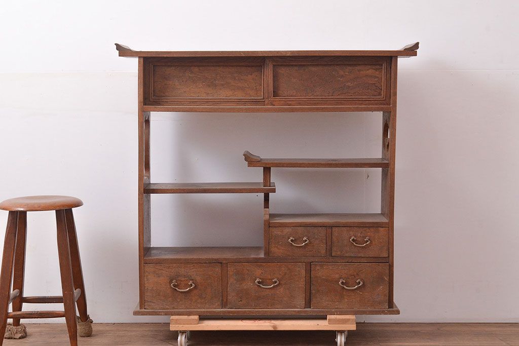 和製アンティーク 総ケヤキ材・前面玉杢 独特な杢目が上品な和の雰囲気を作り出す飾り棚(茶棚)(R-047310)です。