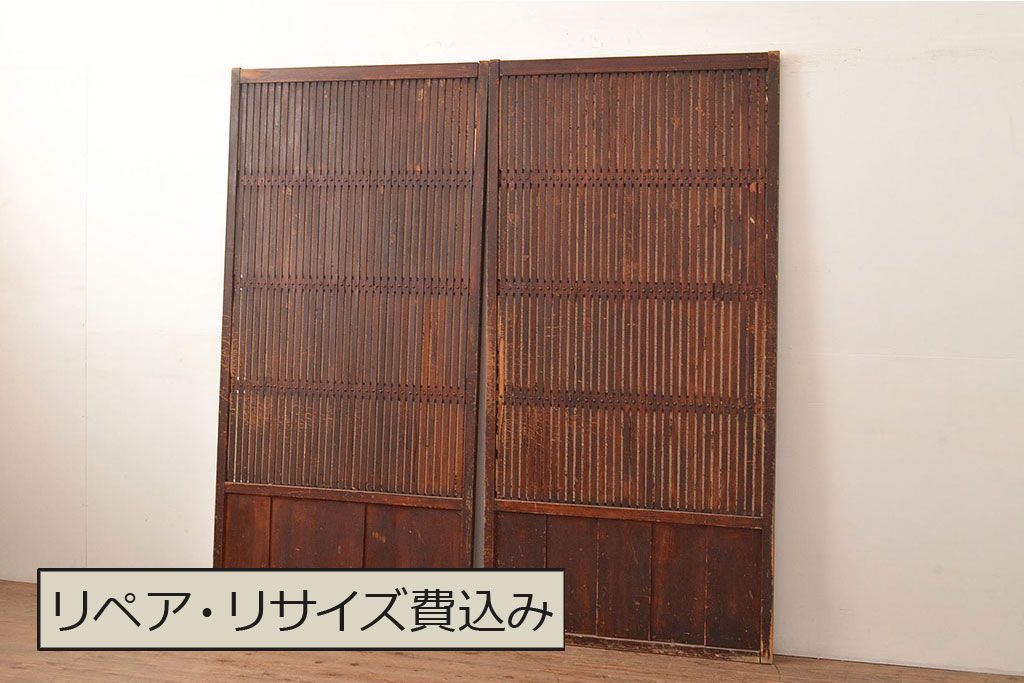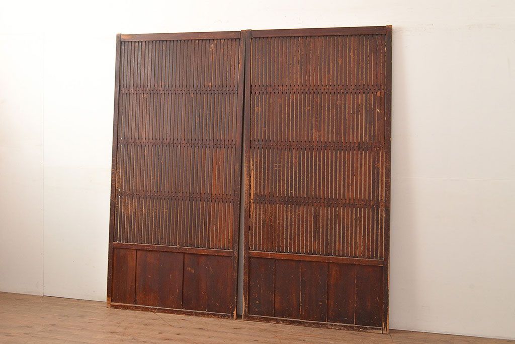 アンティーク建具 和モダンな空間づくりにおすすめの格子戸2枚セット(障子戸、引き戸、建具)(R-048054)
