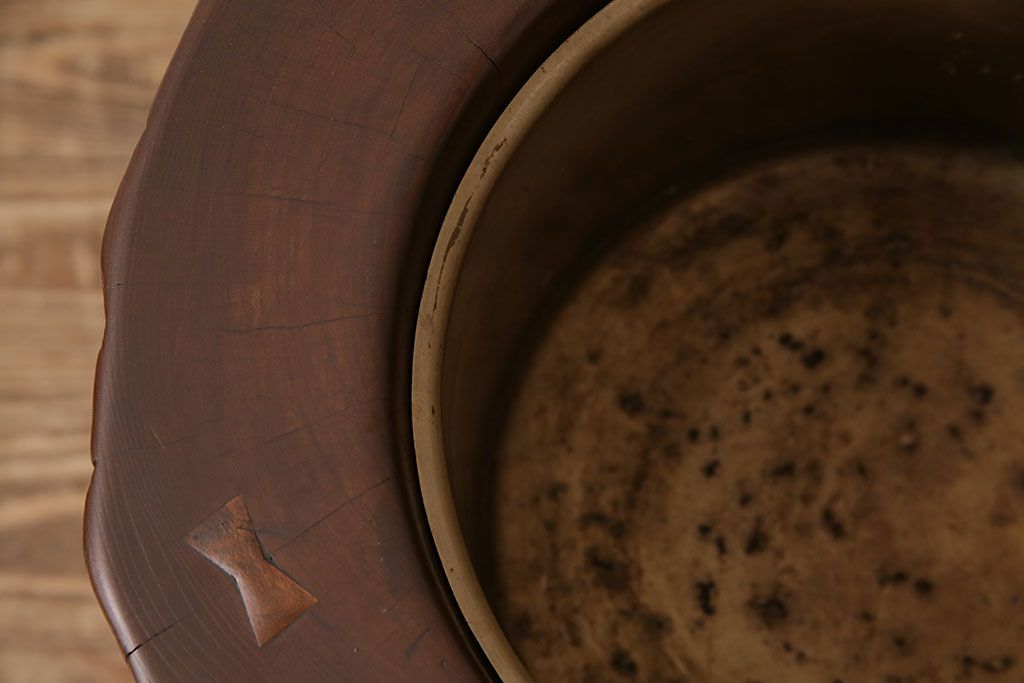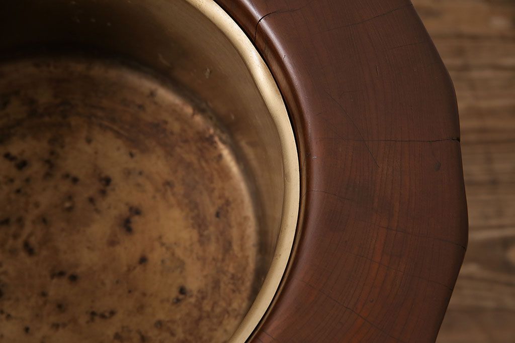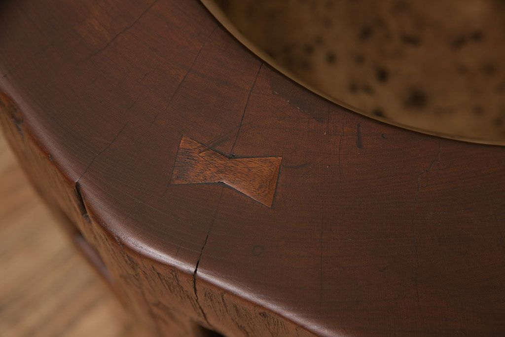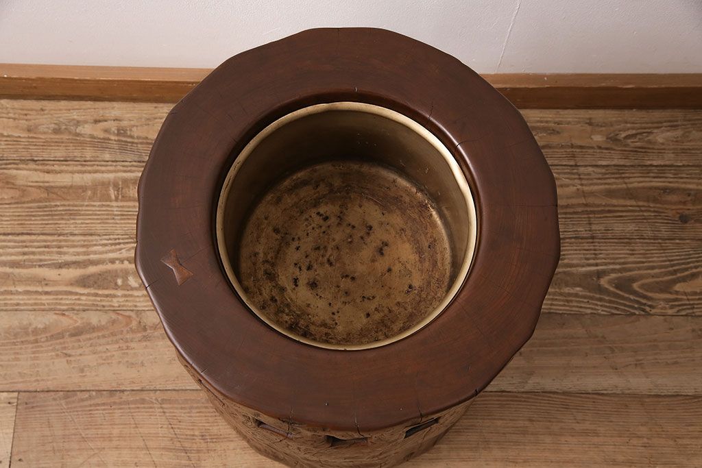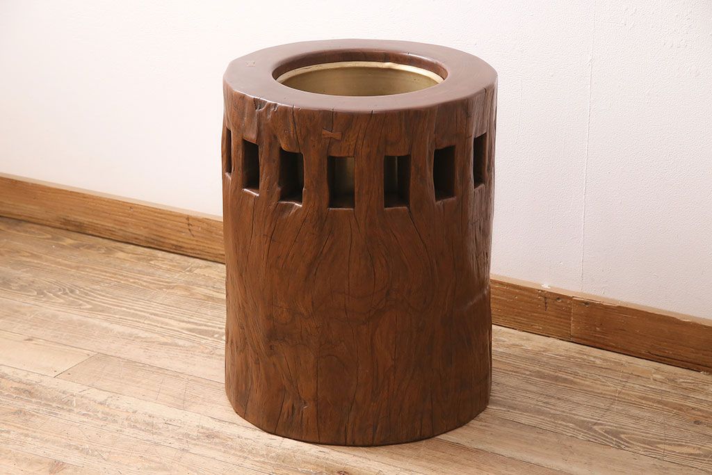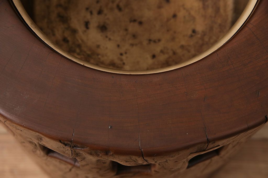 和製アンティーク 水車の軸を利用してつくられた珍しい意匠の立ち火鉢(木製火鉢、手あぶり)(R-048090)