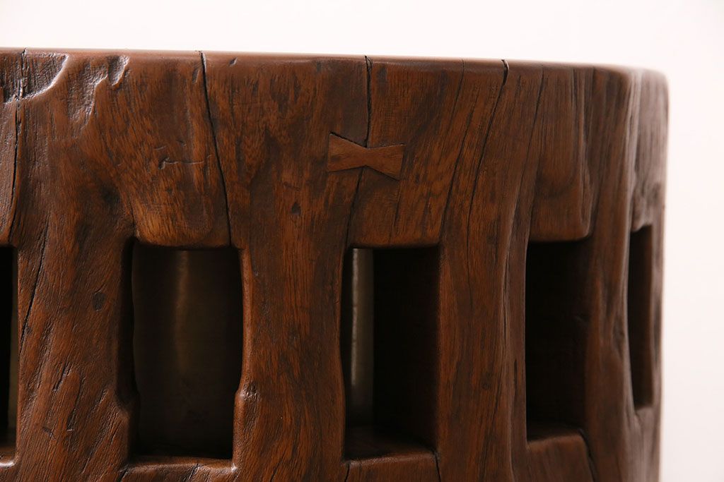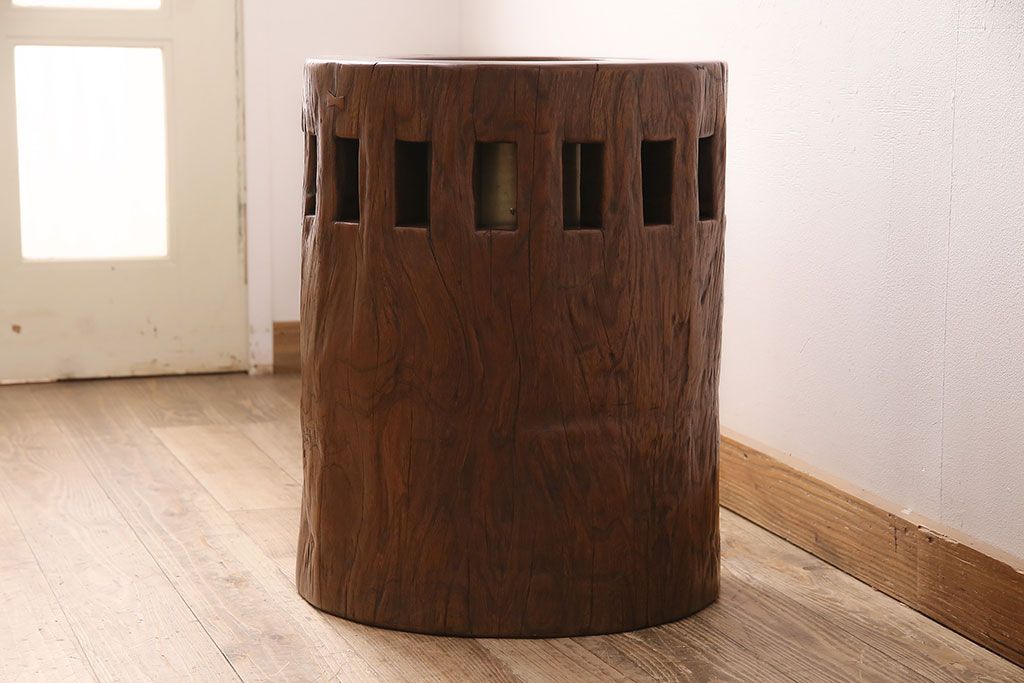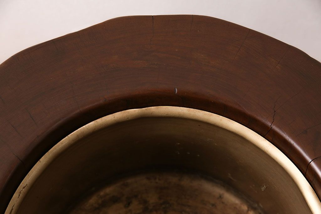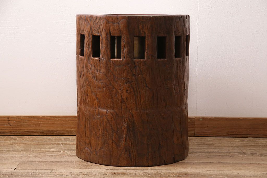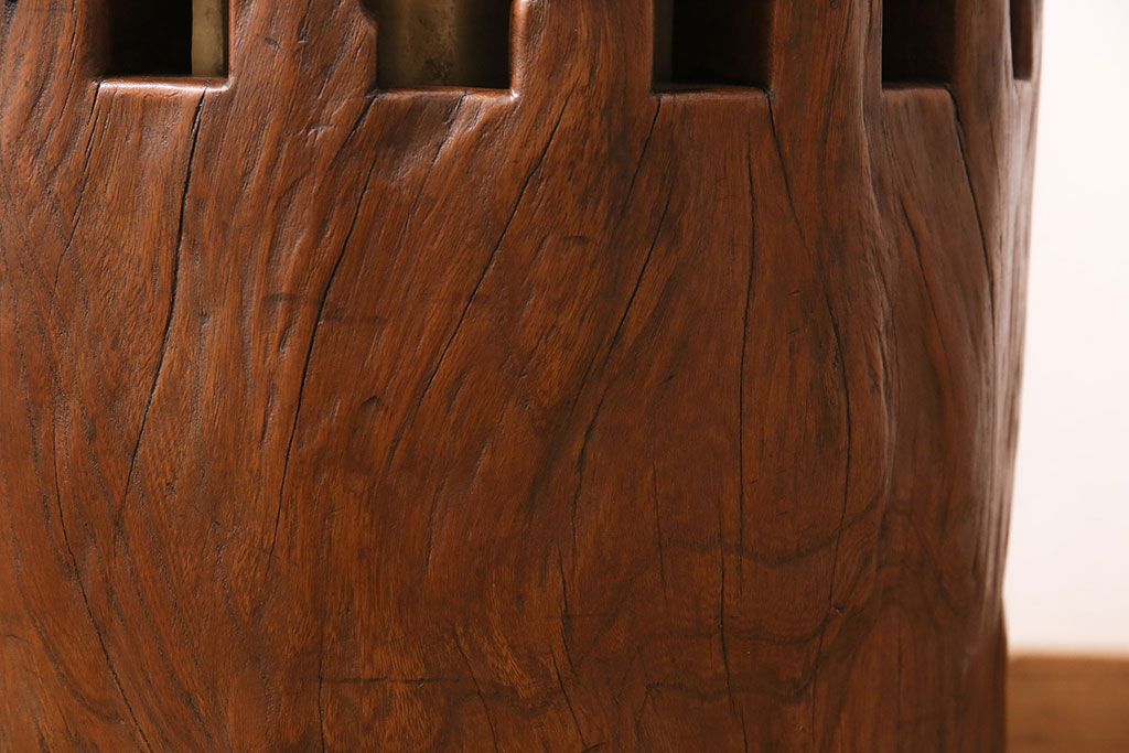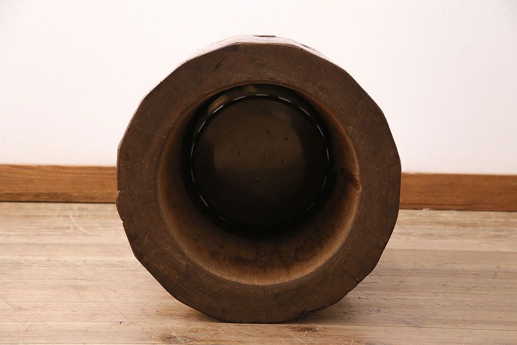 火鉢> 木製火鉢 > 和製アンティーク 水車の軸を利用してつくられた珍しい意匠の立ち火鉢(木製火鉢、手あぶり)(R-048090)