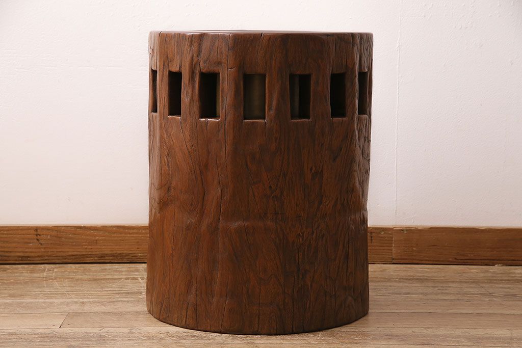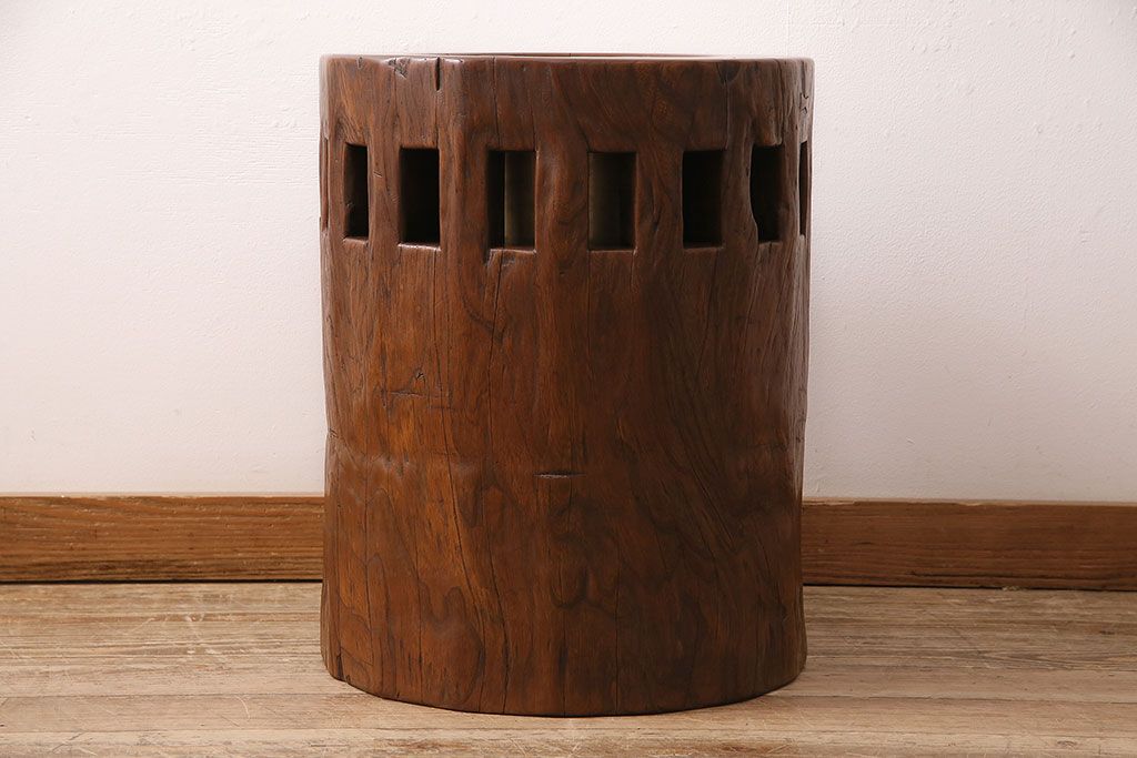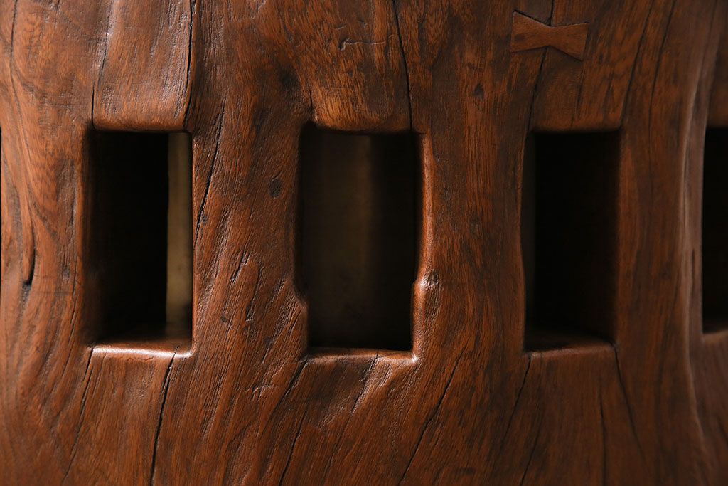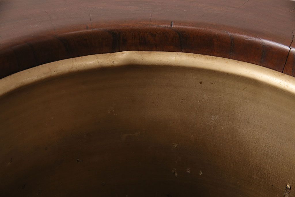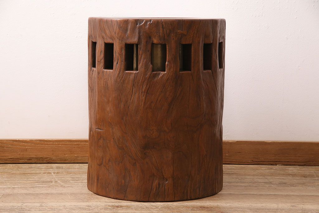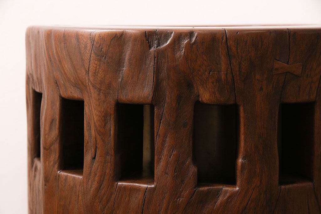 火鉢> 木製火鉢 > 和製アンティーク 水車の軸を利用してつくられた珍しい意匠の立ち火鉢(木製火鉢、手あぶり)(R-048090)