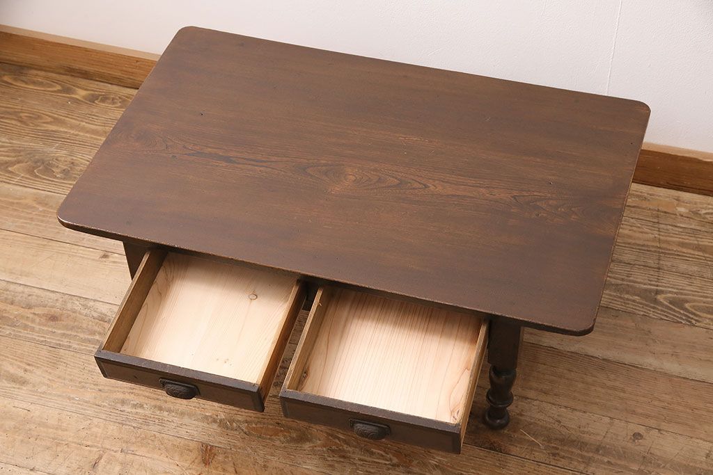 和製アンティーク 和洋折衷な佇まいが魅力の栓材製の文机(座卓、ローテーブル、センターテーブル)(R-048092)です。