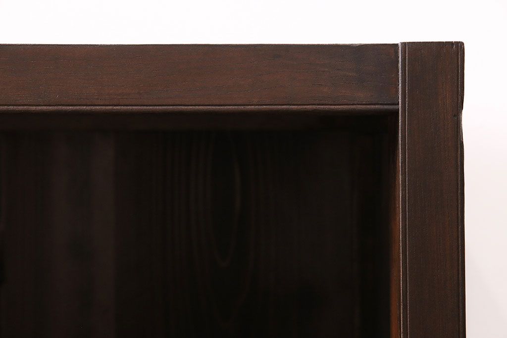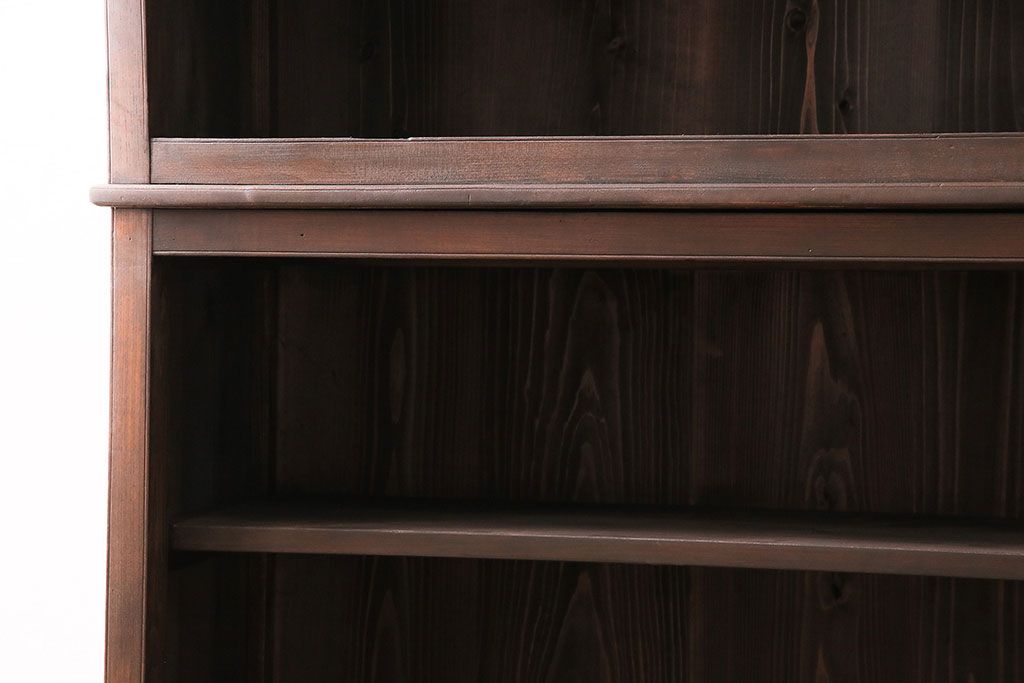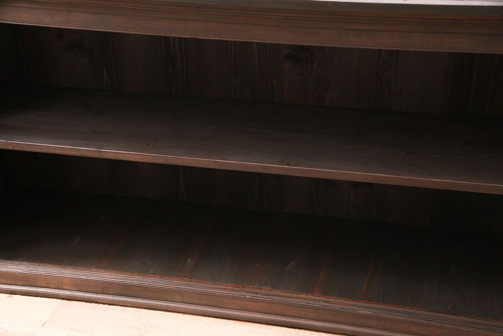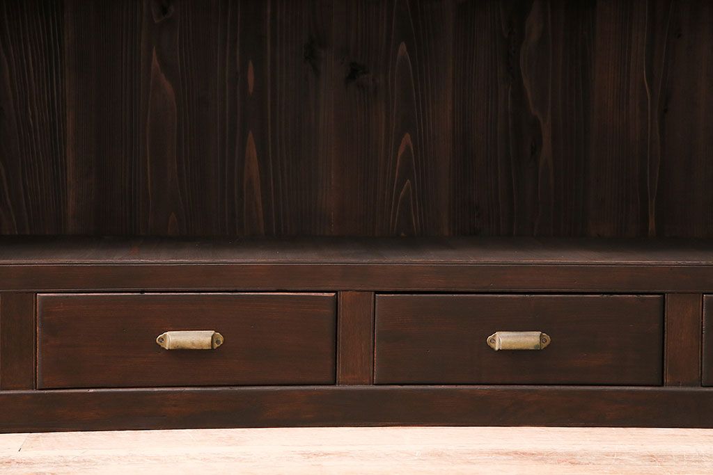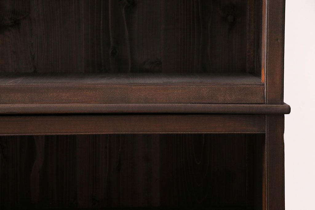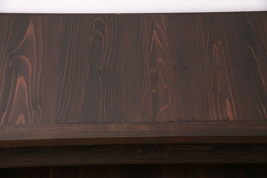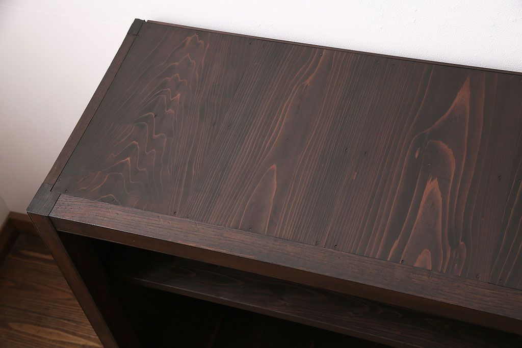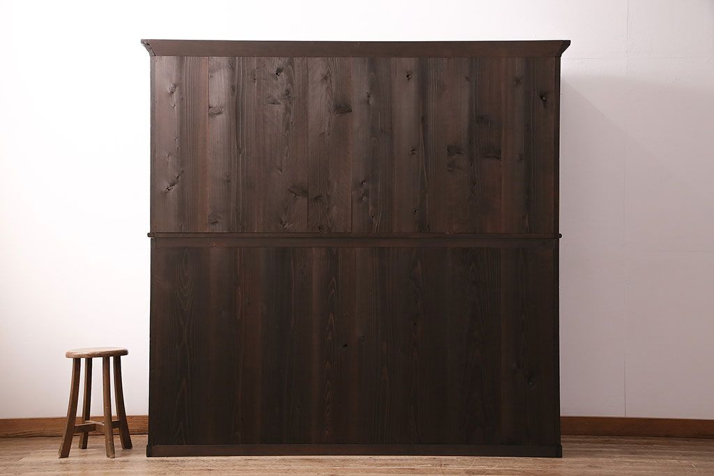 大正期の重ね飾り棚をリペア&カスタム!傷んだ木部の交換し、上下別でも使用可能に。棚板を新たに製作。台輪の補強。濃い茶色で着色し仕上げ。(収納棚、キャビネット)