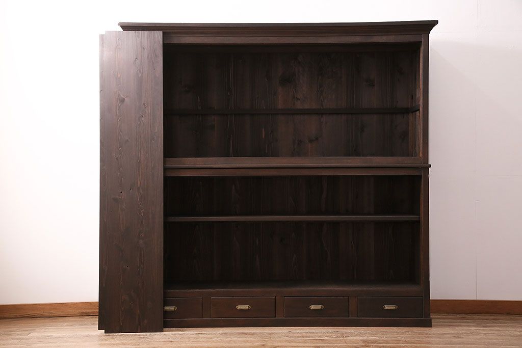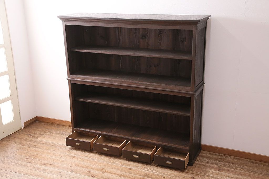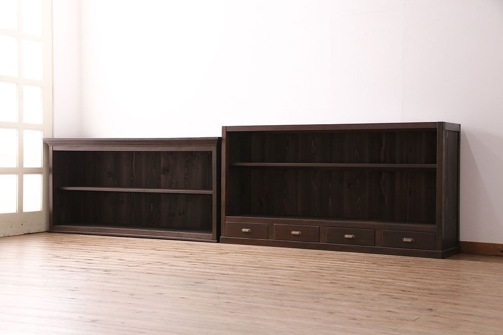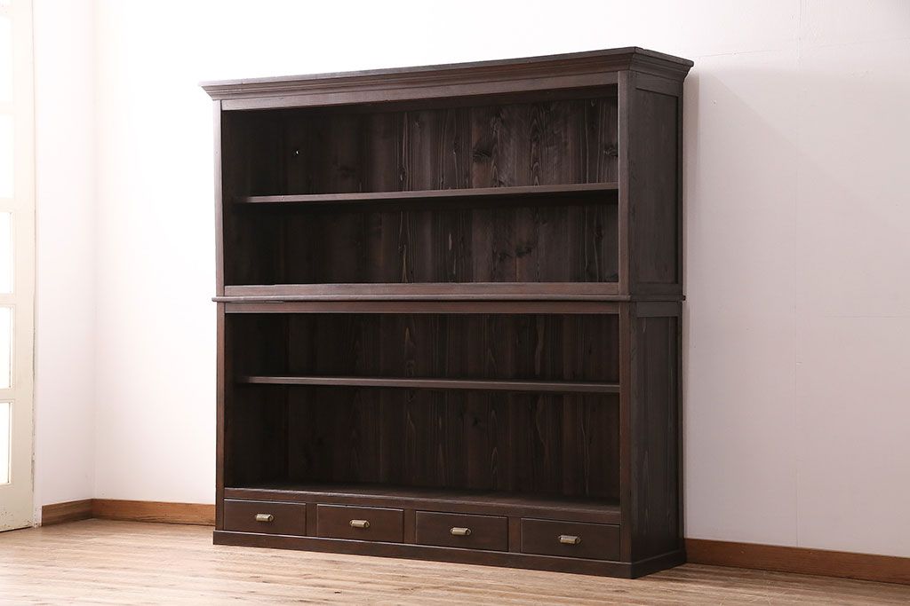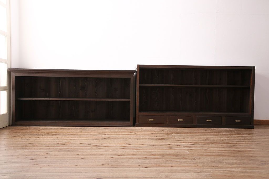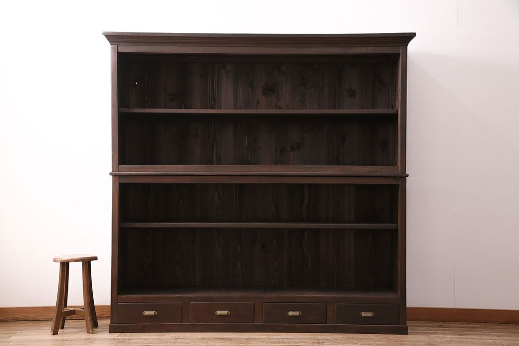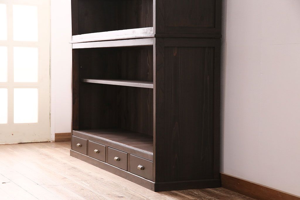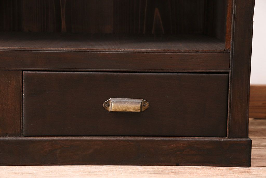 大正期の重ね飾り棚をリペア&カスタム!傷んだ木部の交換し、上下別でも使用可能に。棚板を新たに製作。台輪の補強。濃い茶色で着色し仕上げ。(収納棚、キャビネット)