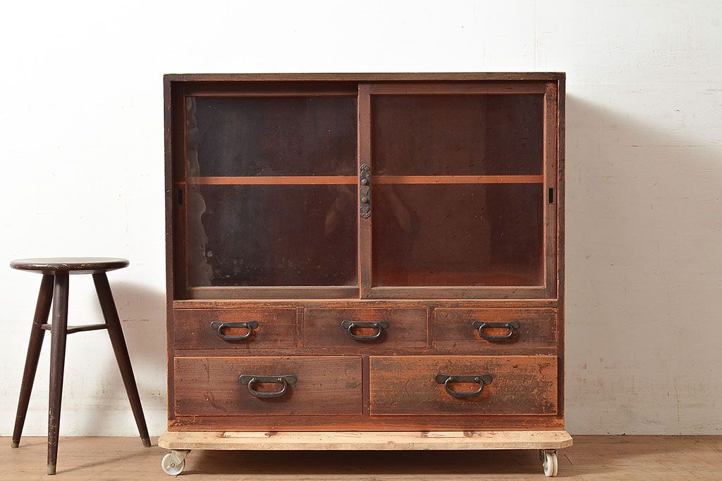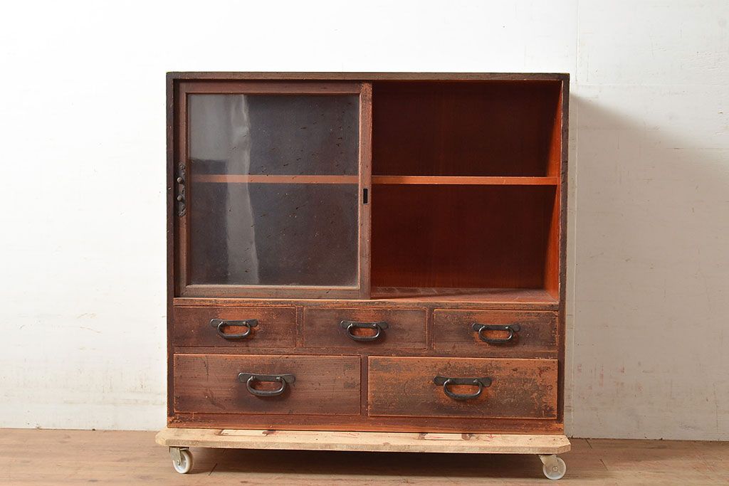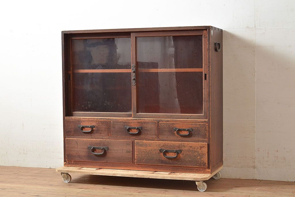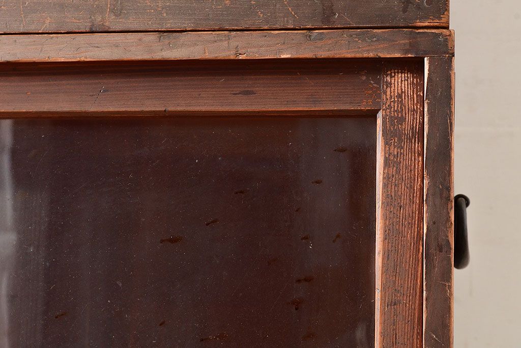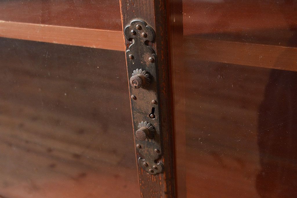 和製アンティーク レトロな佇まいが趣溢れるヒノキ材製の戸棚(収納棚、飾り棚、キャビネット)(R-047723)