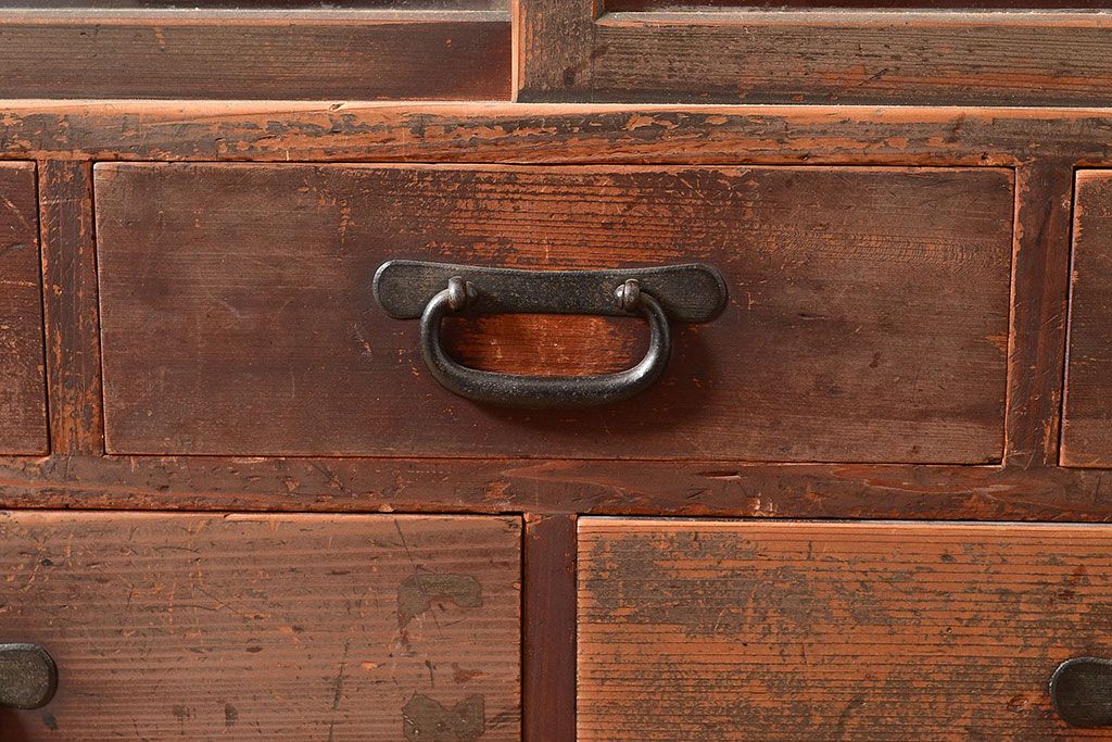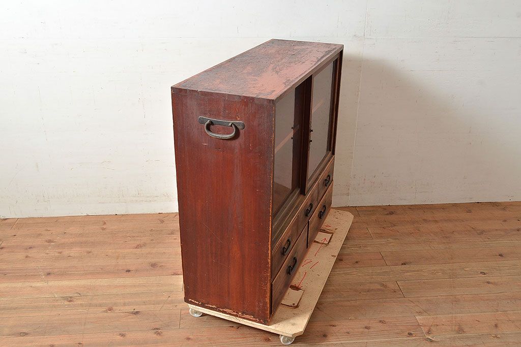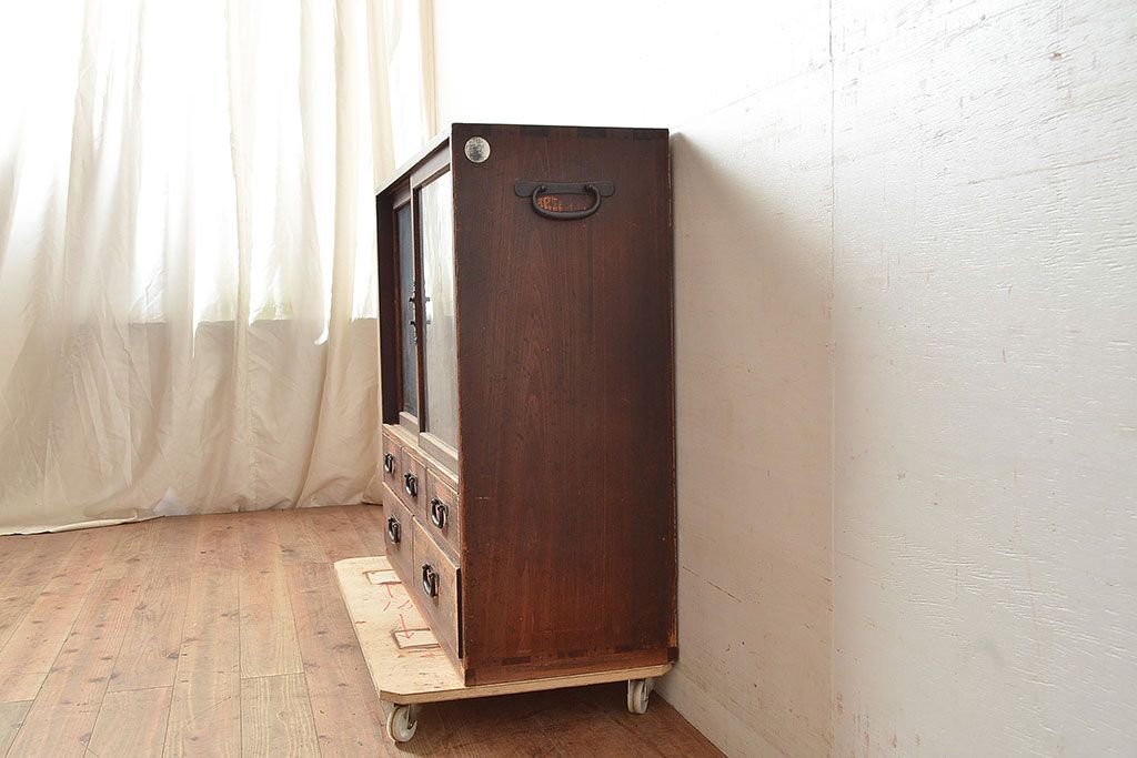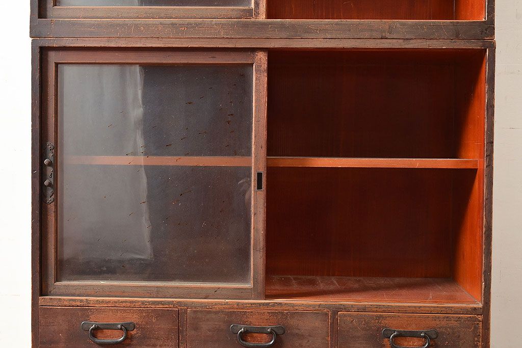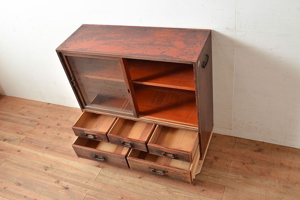 和製アンティーク レトロな佇まいが趣溢れるヒノキ材製の戸棚(収納棚、飾り棚、キャビネット)(R-047723)