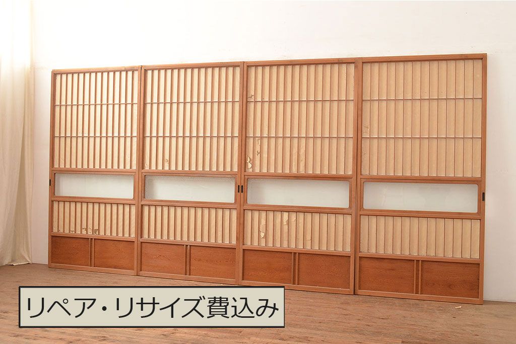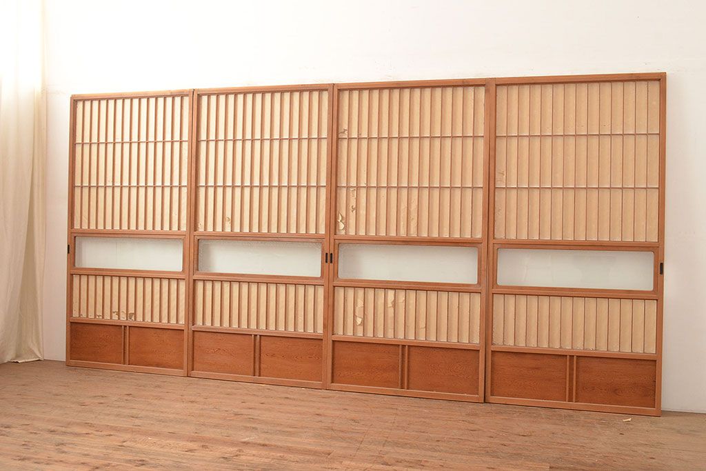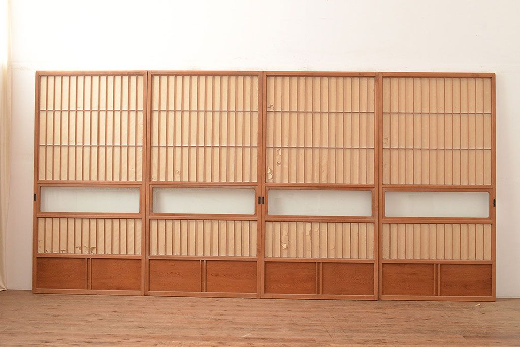 状態が気になる方には現状販売はおすすめできませんので、慎重なご検討をお願いいたします。アンティーク建具 凛とした和の美しさ漂う障子戸4枚セット(引き戸、建具)(R-048060)です。