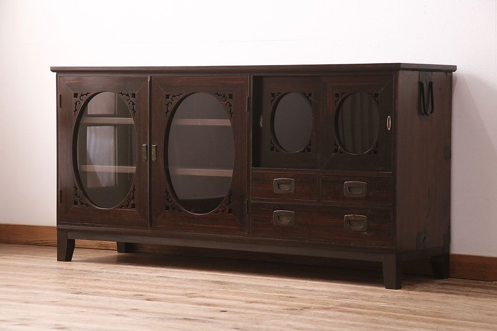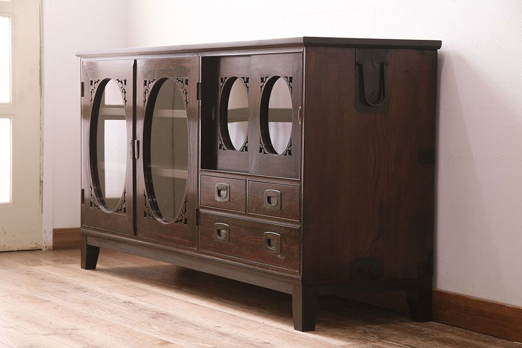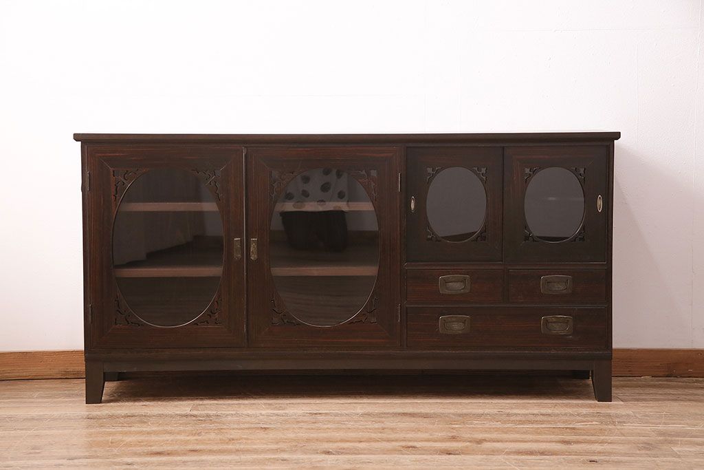 昭和初期のリビングボードをリペア&カスタム!天板、木製脚、可動式の棚板を設置。建具のガラスをクリアガラスへ入れ替え。(収納棚、戸棚、キャビネット)