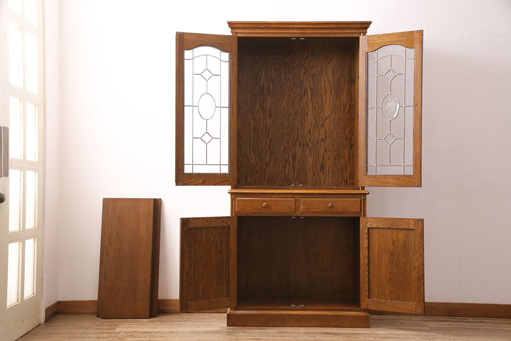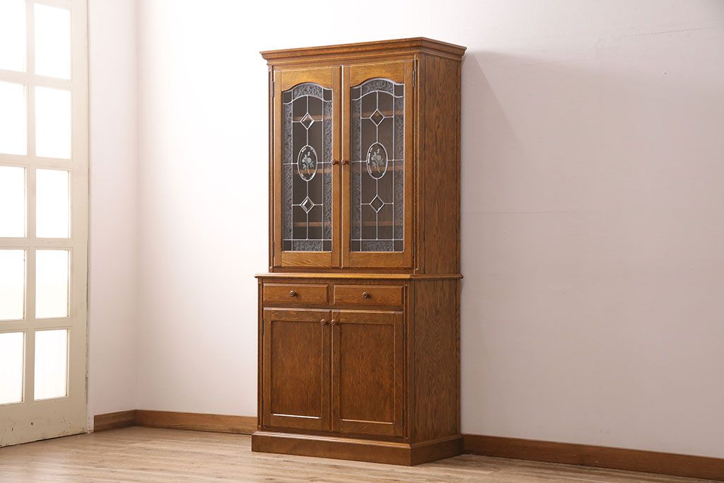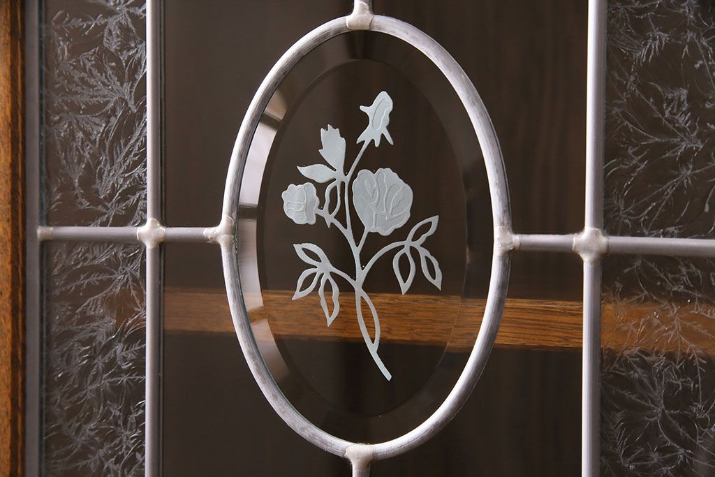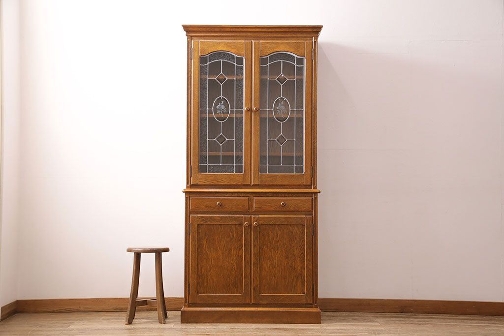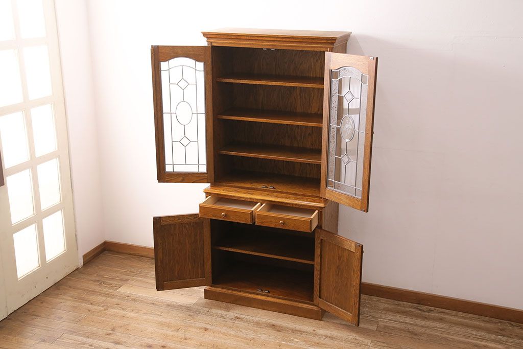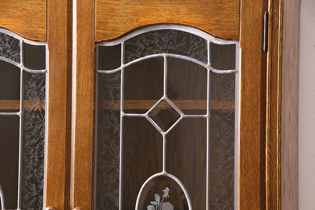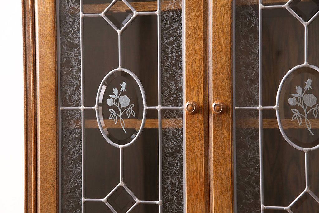 キャビネット・戸棚> 食器棚・カップボード > 中古美品 三越 Brugge VE262 優雅なステンドグラスが魅力的なブルージュシリーズのキャビネット(定価約31万円)(食器棚、カップボード、収納棚)(R-048128)