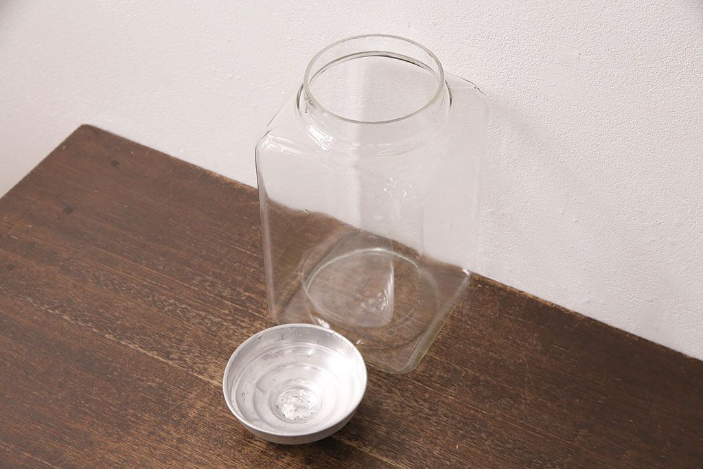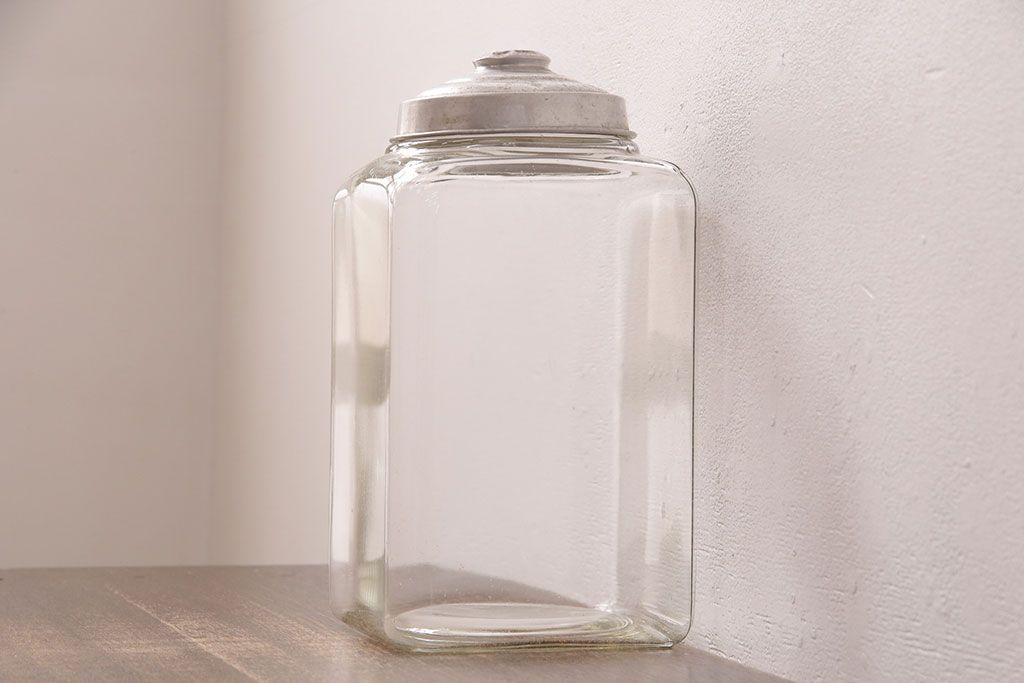 昭和レトロ 収納しながらお洒落にディスプレイ!懐かしさ漂うレトロなガラス瓶(ガラスビン、キャニスター)(R-048157)