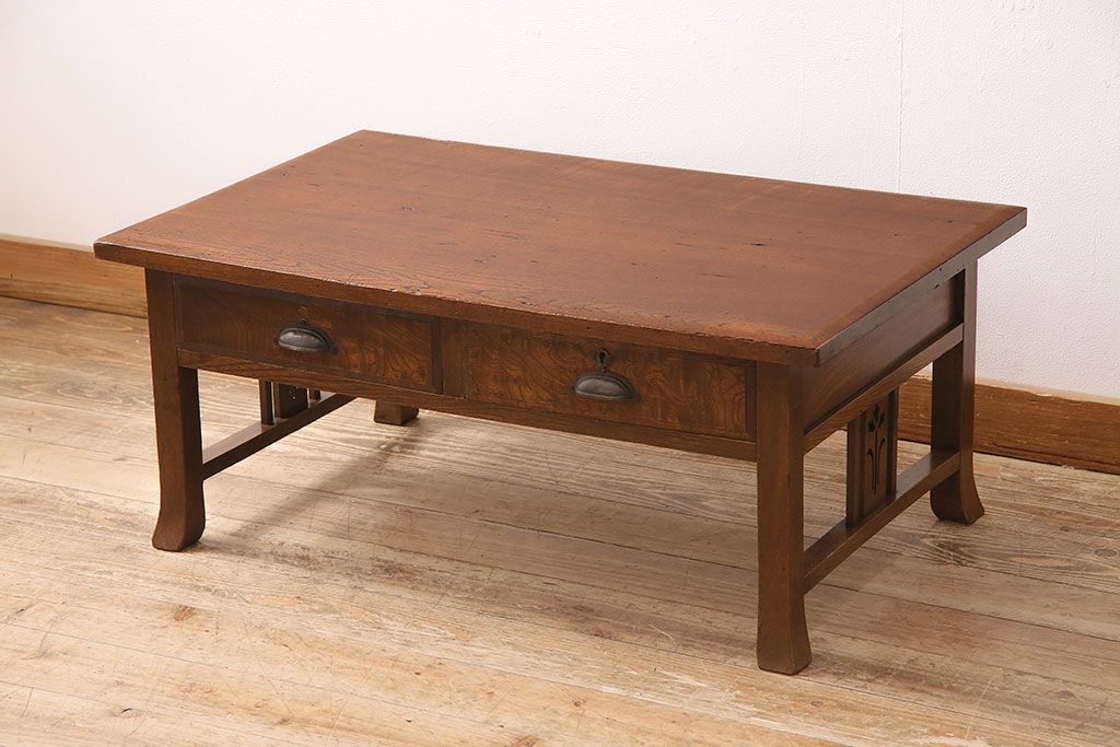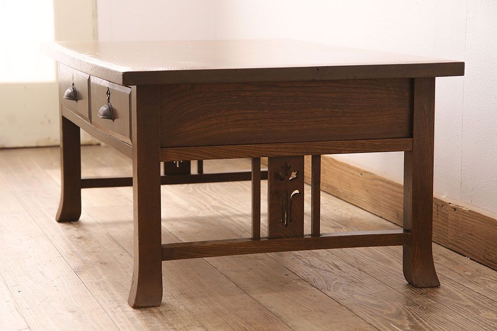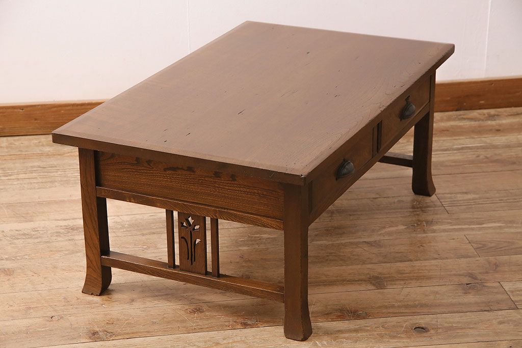和製アンティーク 透かし彫りが可愛らしい文机(座卓、ローテーブル、センターテーブル)(R-048211)です。