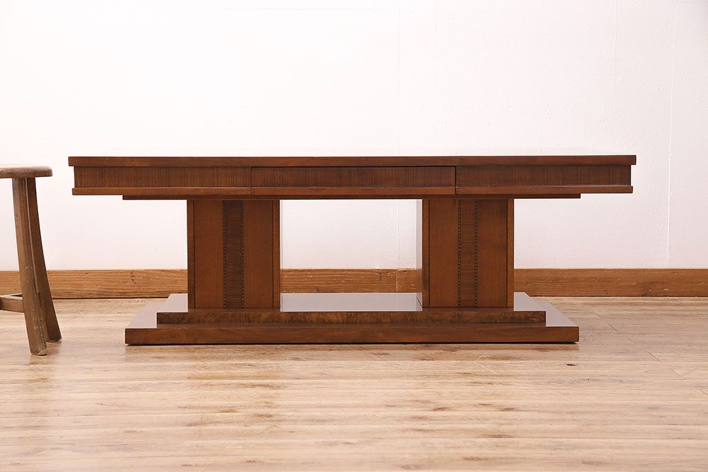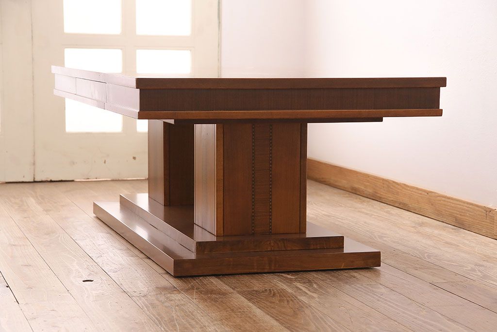 中古 アメリカ製の高級家具!象嵌が施された存在感のあるセンターテーブル(コーヒーテーブル、ローテーブル)(R-048243)です。