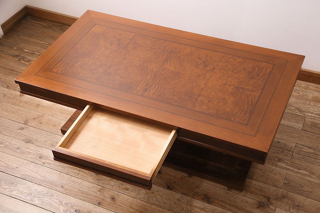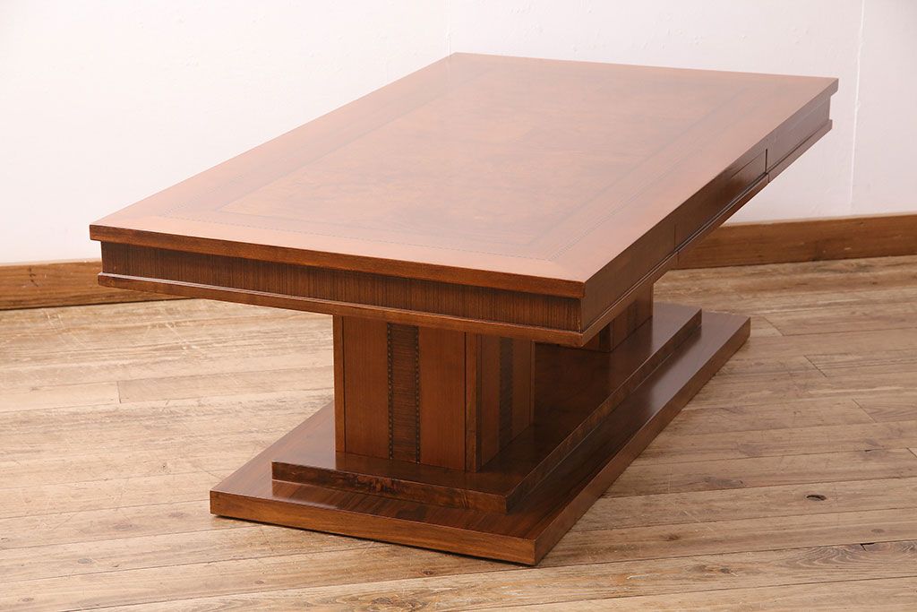 中古 アメリカ製の高級家具!象嵌が施された存在感のあるセンターテーブル(コーヒーテーブル、ローテーブル)(R-048243)